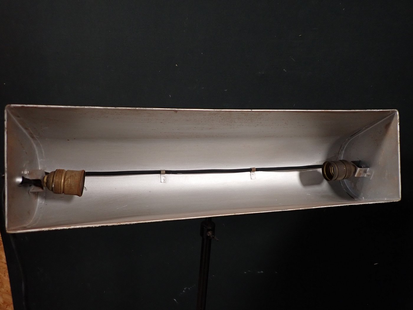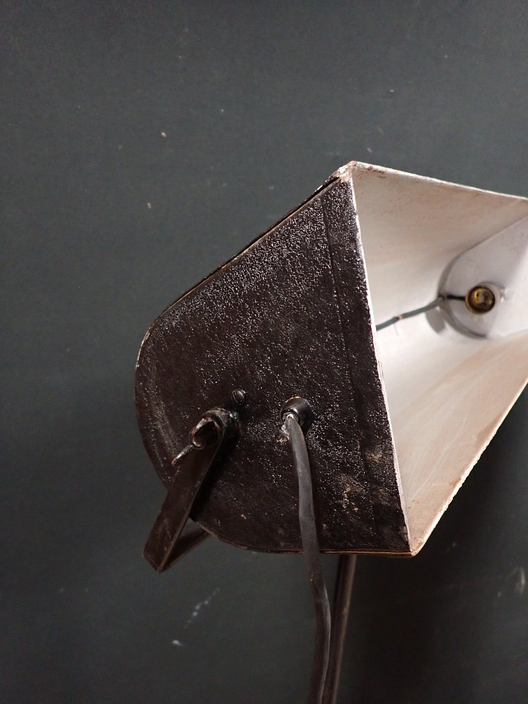 DetailansichtDiese frisch restaurierte Arbeitsplatzleuchte mit vielen liebevollen Details war einmal eine Maschinenleuchte. Sie ist am Haltestab höhenverstellbar und drehbar,...