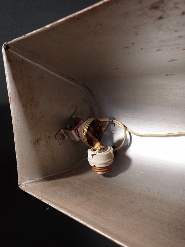 DetailansichtOriginal Industriehängelampe in gutem Zustand - bis auf ein paar Rostflecken und kleine Abplatzer, die aber eindeutig zu solch einer Leuchte dazu gehören. Die...