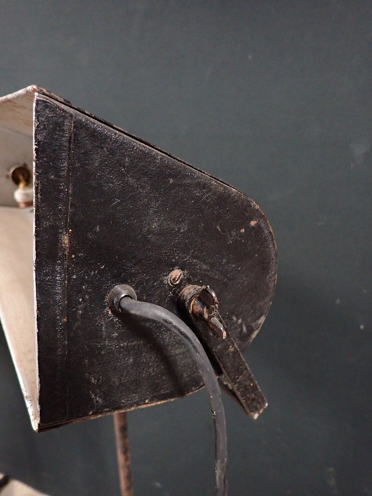 DetailansichtEhemaliger Bahngleis- oder Bahnübergangstrahler aus solidem Emaille. Wie eine echte Industrieleuchte zeigt er Gebrauchsspuren und Rostflecken, aber der Strahler...