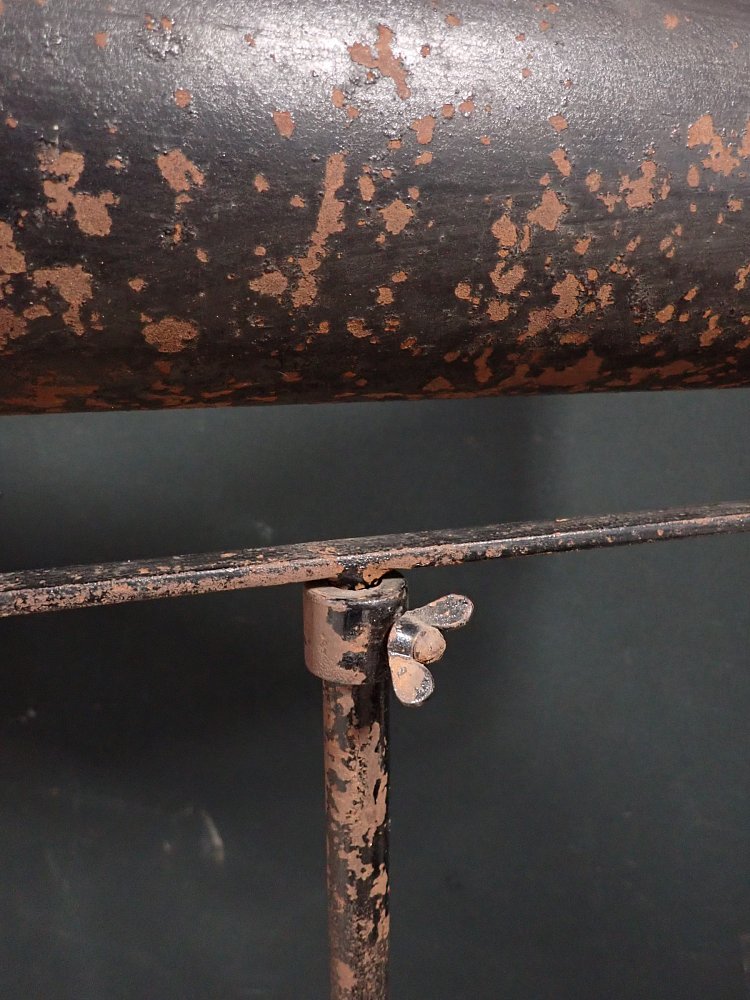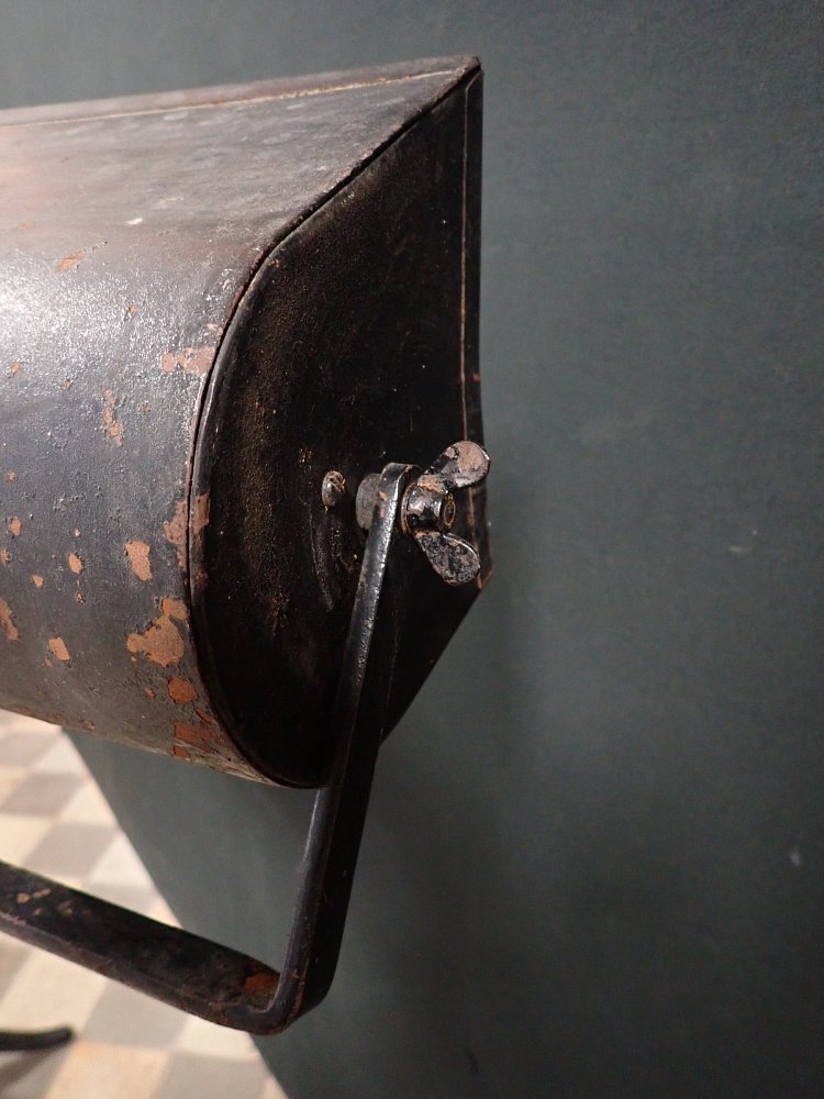 DetailansichtOriginal, historischer Bühnenstrahler aus einem Theater mit unzähligen Verstellmöglichkeiten an Aufhängung und Linse. Lackiert ist das ehrwürdige Stück mit...