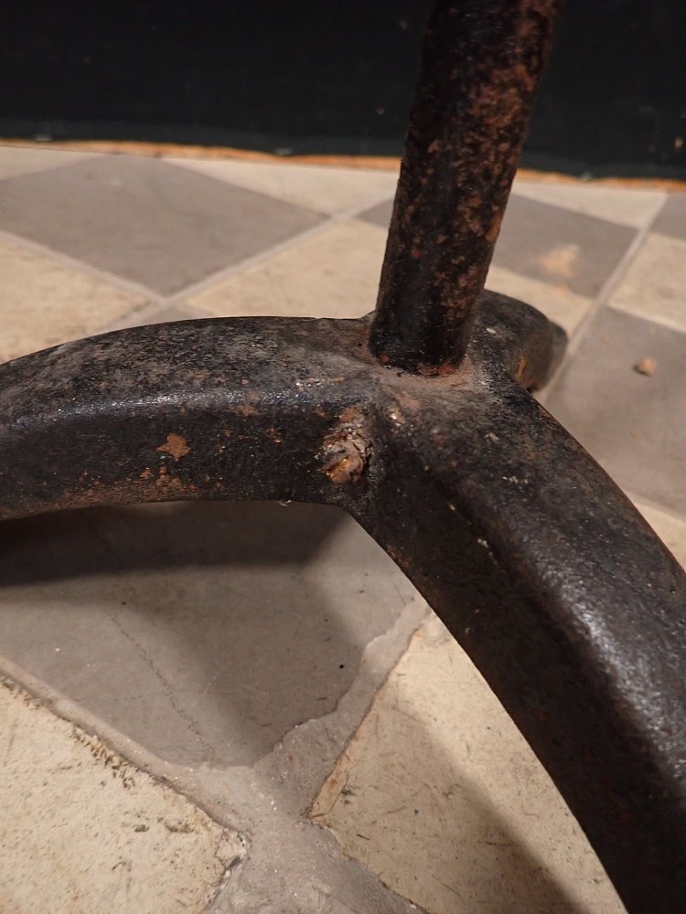 DetailansichtDie Leuchte hat ein Oberteil aus Gusseisen, an dem der opal überfangene Glaskörper mit metallenem Ring und Rädelschrauben befestigt ist. Dieses Exemplar hat ein...