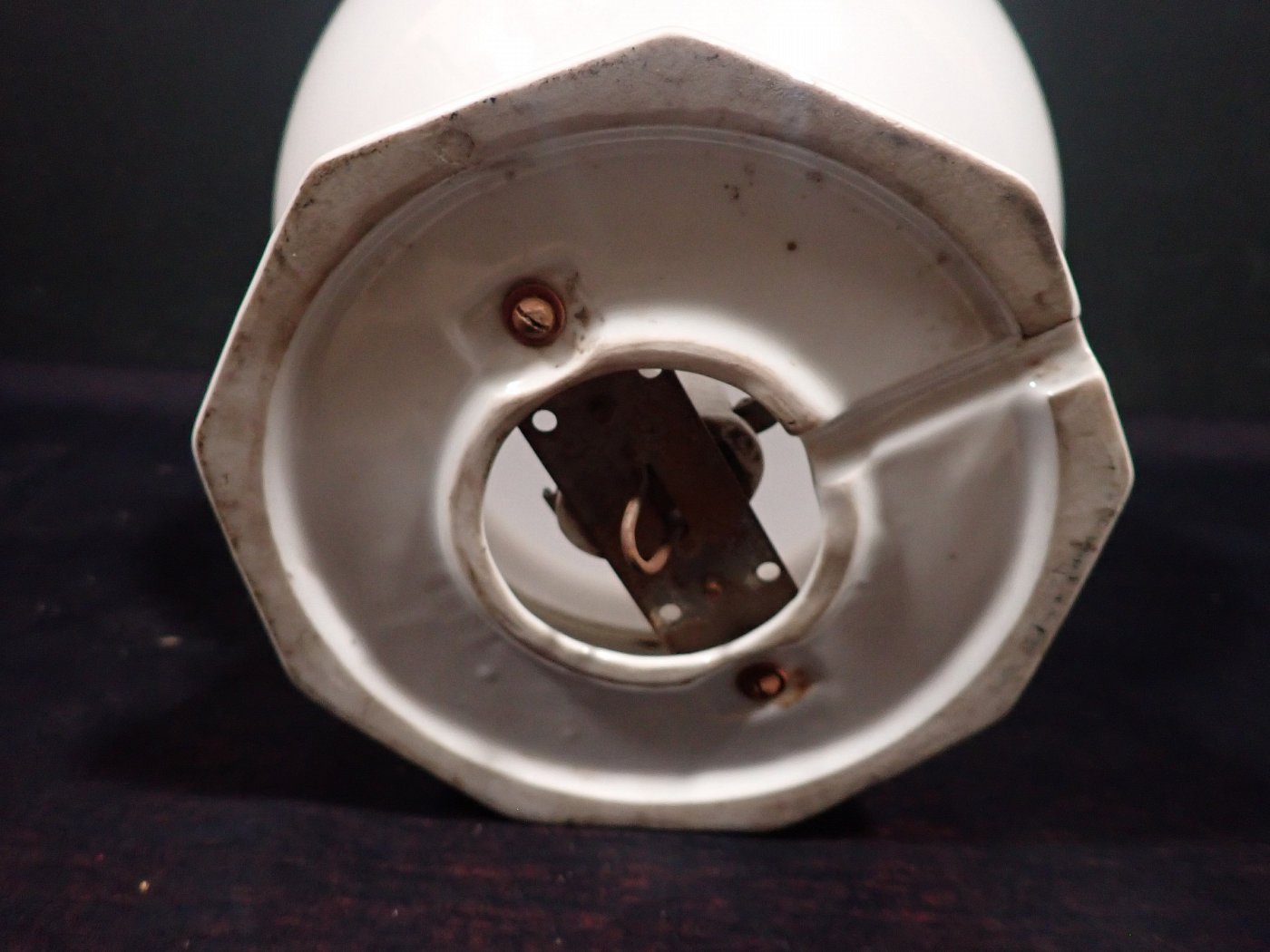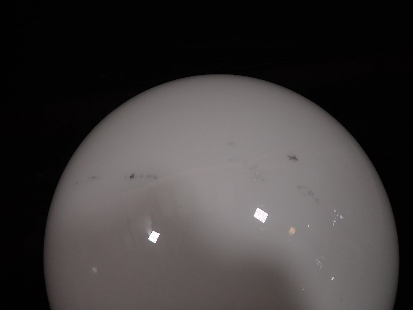 Kugel Deckenleuchte mit Keramiksockel. Die Leuchte hat ein Sockel aus Keramik, der nach unten abgestuft ist. In den Keramiksockel wird mit drei Schrauben das Opal...