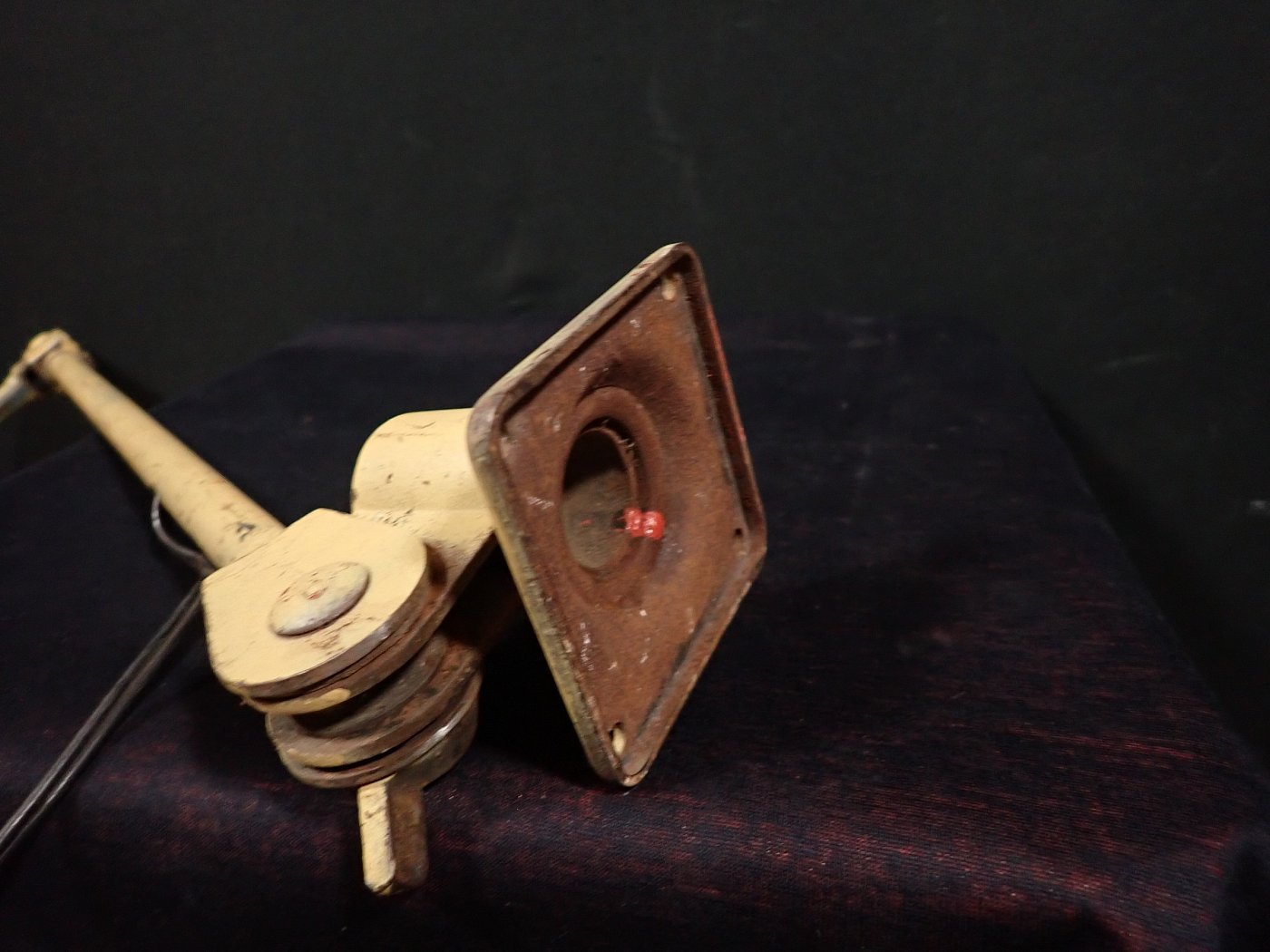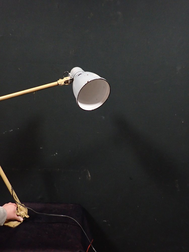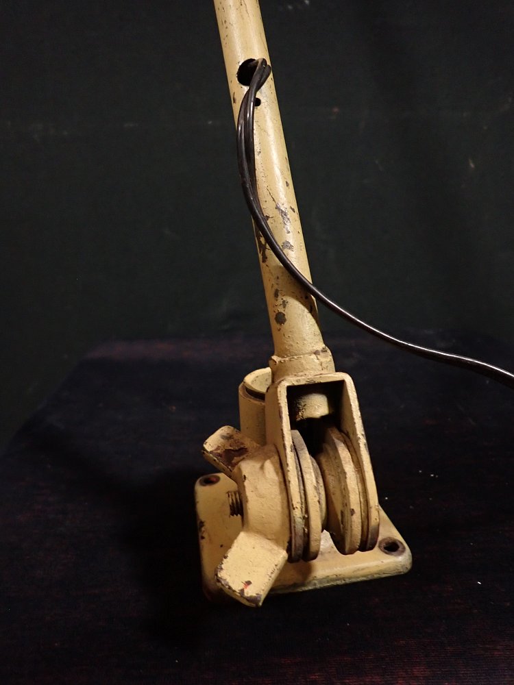 Historische Gelenkleuchte zum Anschrauben am Tisch oder der Wand.