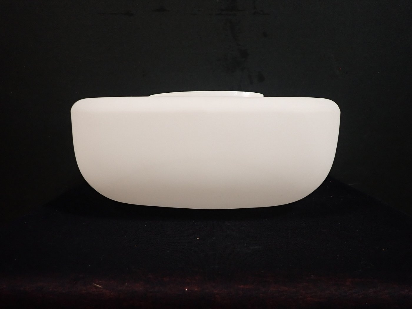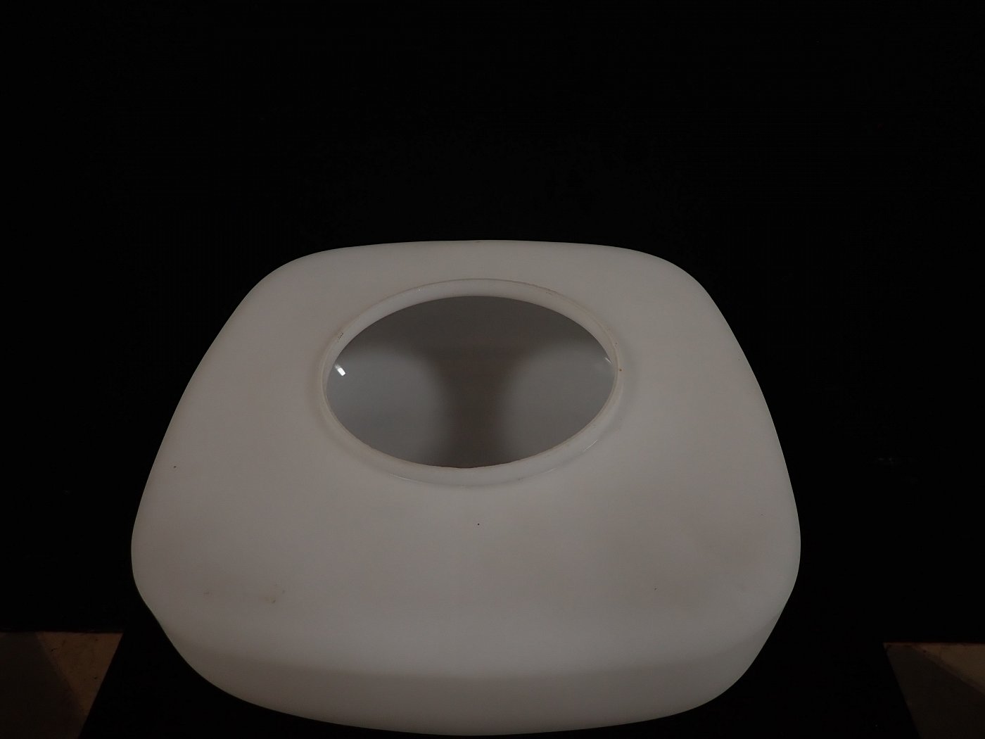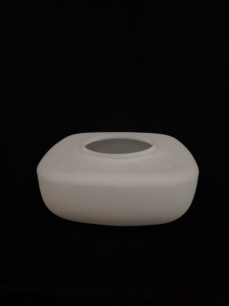 Das Besondere der opalüberfangenen Nurglasleuchte ist die quadratische Form, die durch die abgerundeten Ecken und Kanten und die matte Oberfläche schick und elegant wirkt.