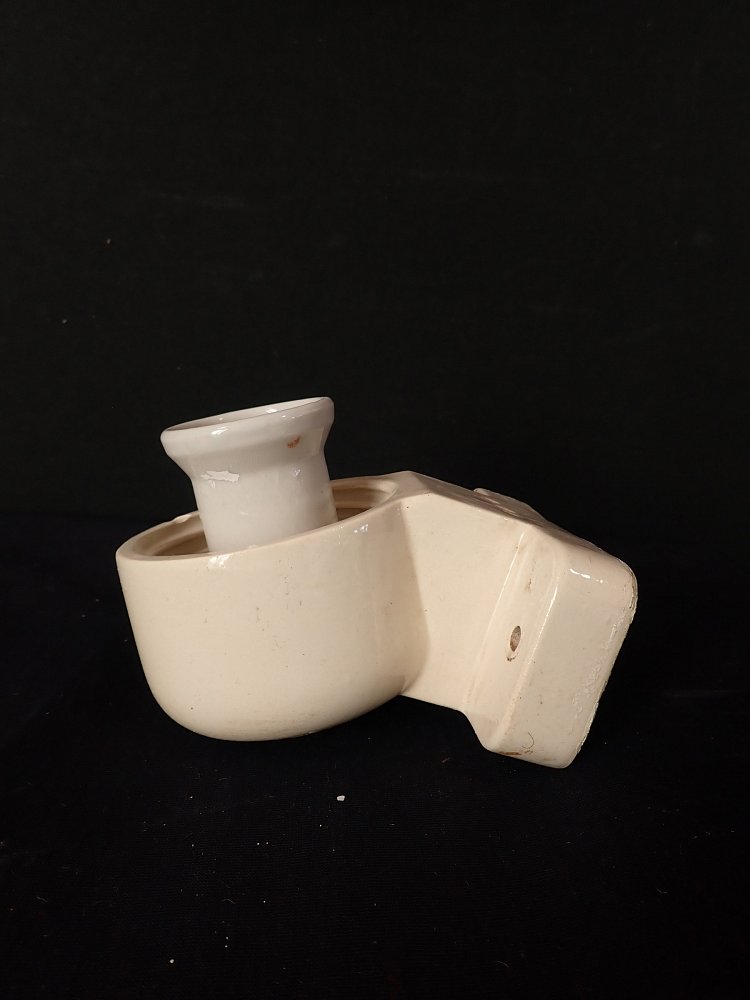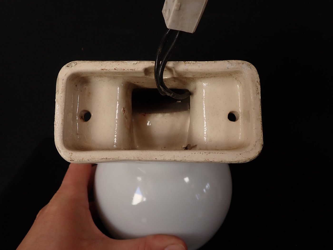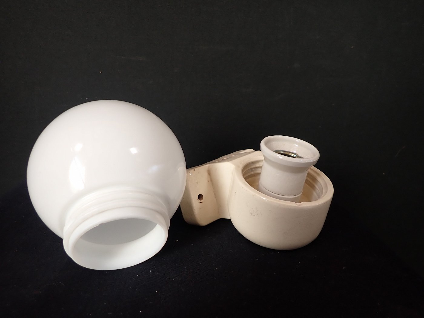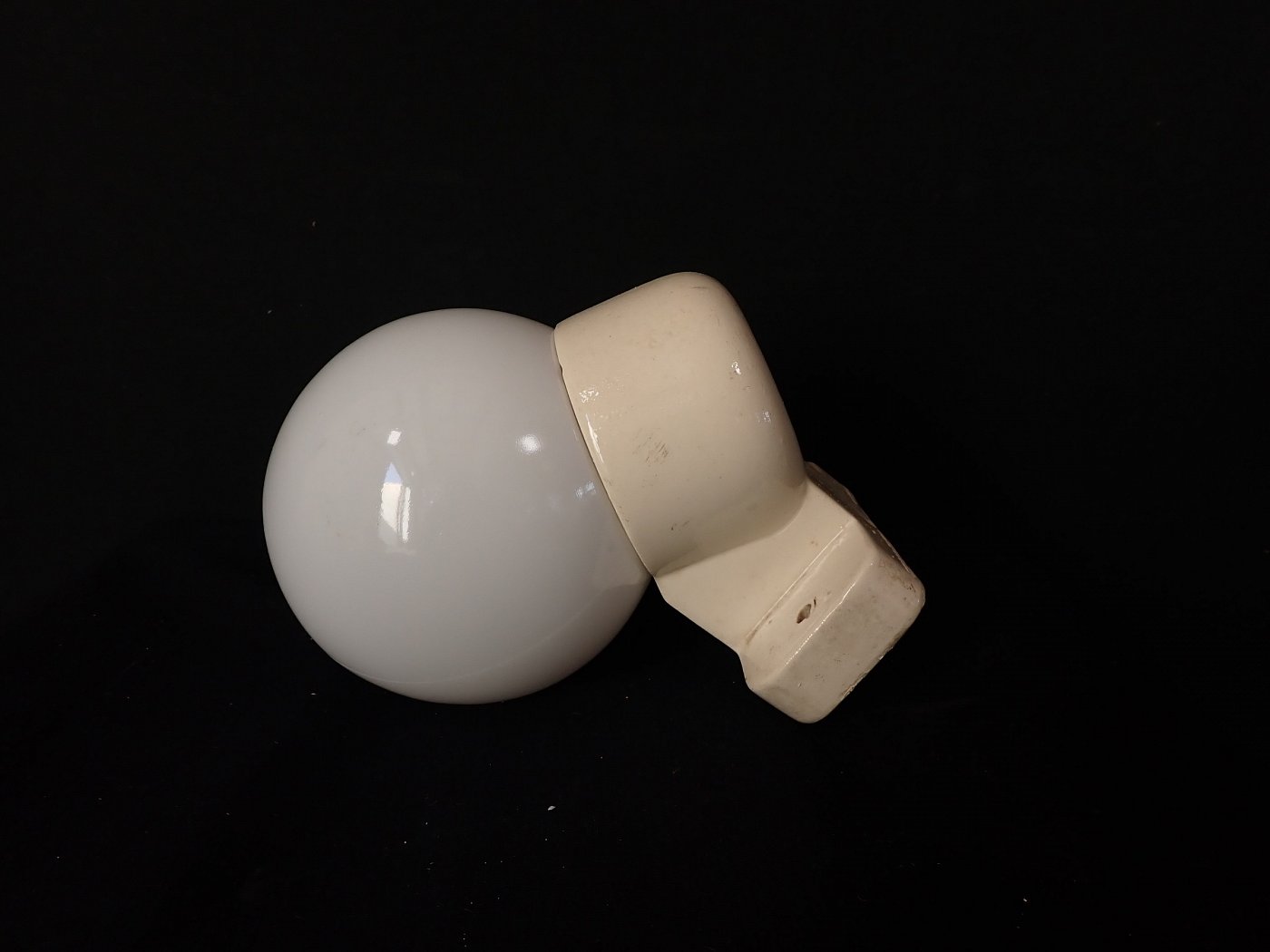 Leuchten dieser Art kennt man hauptsächlich aus Kellern, Fluren oder Treppenabgängen. Durch das klassisch schlichte Design und den ausgesprochen guten Zustand können wir uns die kleine Leuchte aber auch bestens in einem Badezimmer vorstellen.