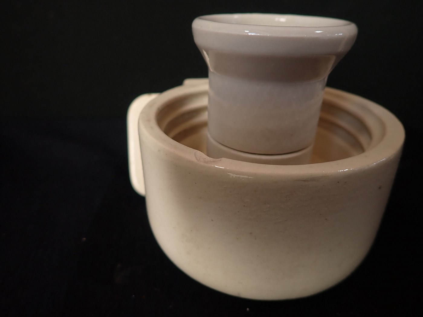 In den schräg nach oben geneigneten Keramiksockel wird über ein Gewinde eine kleine Glaskugel eingedreht.