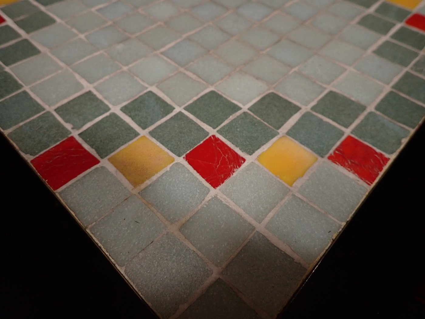 Der Hocker befindet sich in einem außerordentlich guten Zustand. Ein paar Fliesen haben eine rissige Oberfläche, was aber Optisch und bei der Benutzung nicht stört.