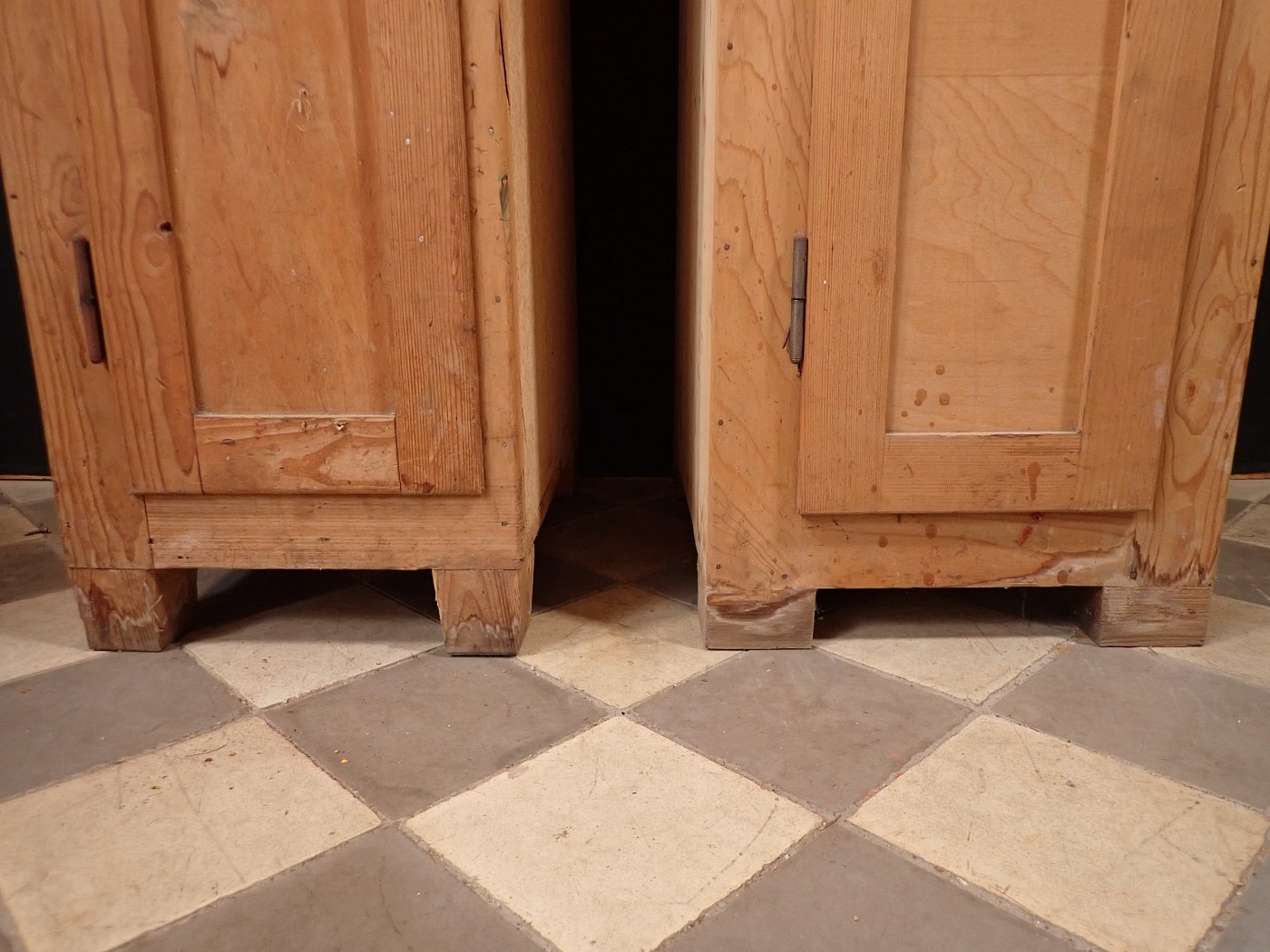 Bisher wurden die Spinde als Aufbewahrung in einer Sattlerei genutzt. Die jahrzehntelange Nutzung hat deutliche Spuren hinterlassen, so sind beispielsweise im Inneren ausgelaufene Farbreste, zahlreiche Nägel, die zur Aufhängung von Werkzeug dienten und der eine oder andere Kratzer zu finden. Eine der Seitenwände besteht aus einer Pressspanplatte.