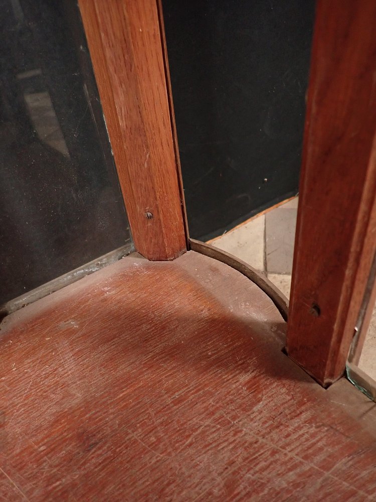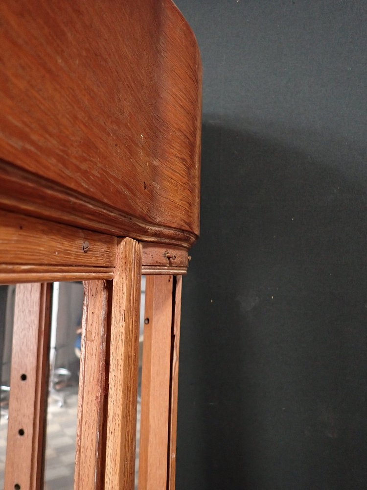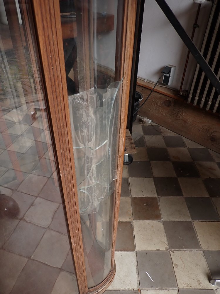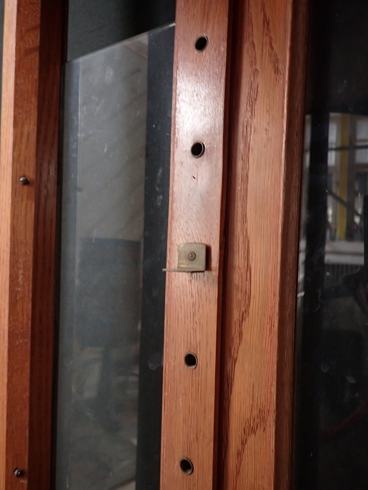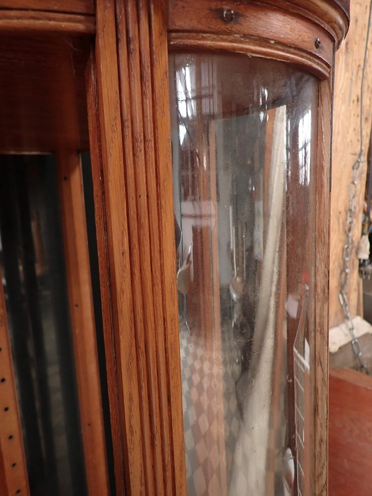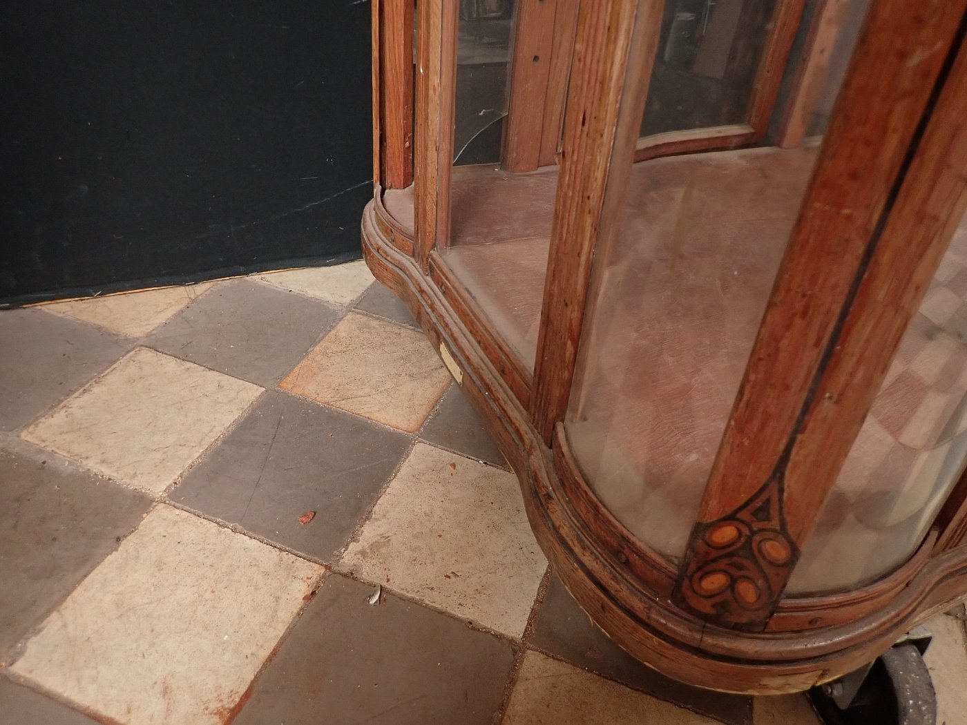Leider befindet sich die Vitrine in keinem besonders guten Zustand und braucht eine Überarbeitung vom Fachmann, um wieder in neuem alten Glanz erstrahlen zu können.