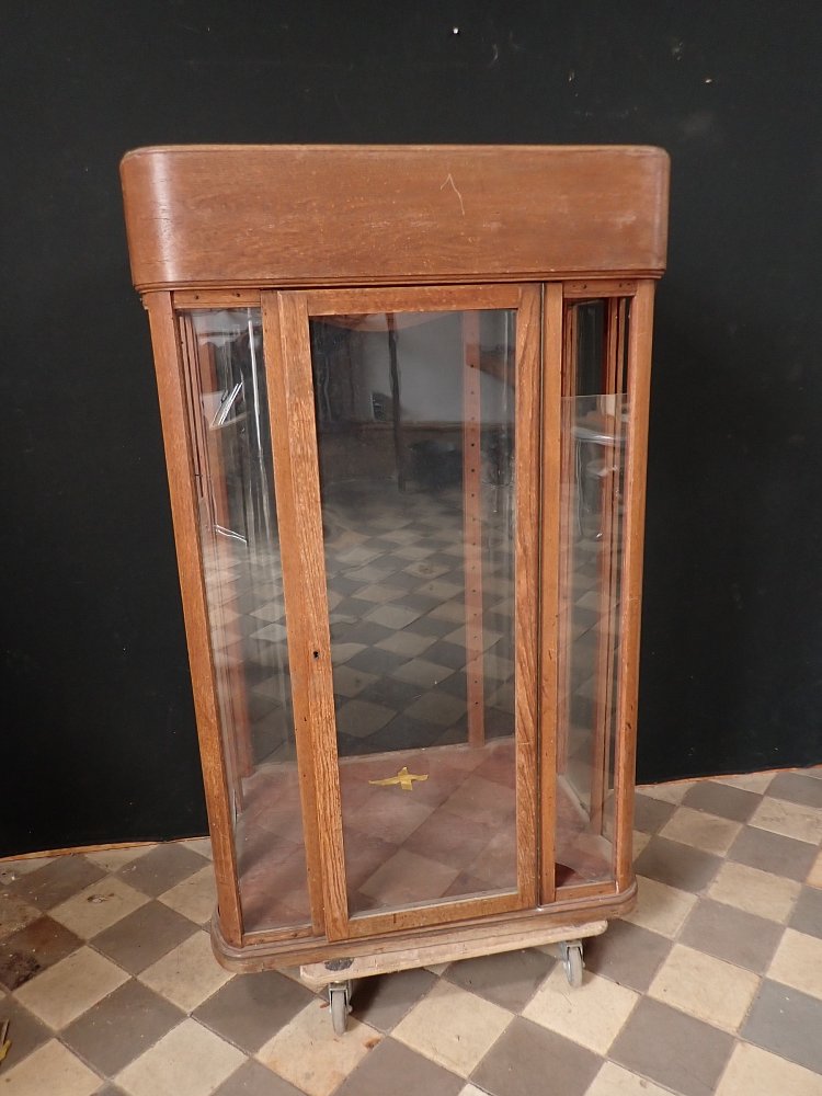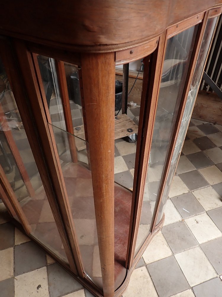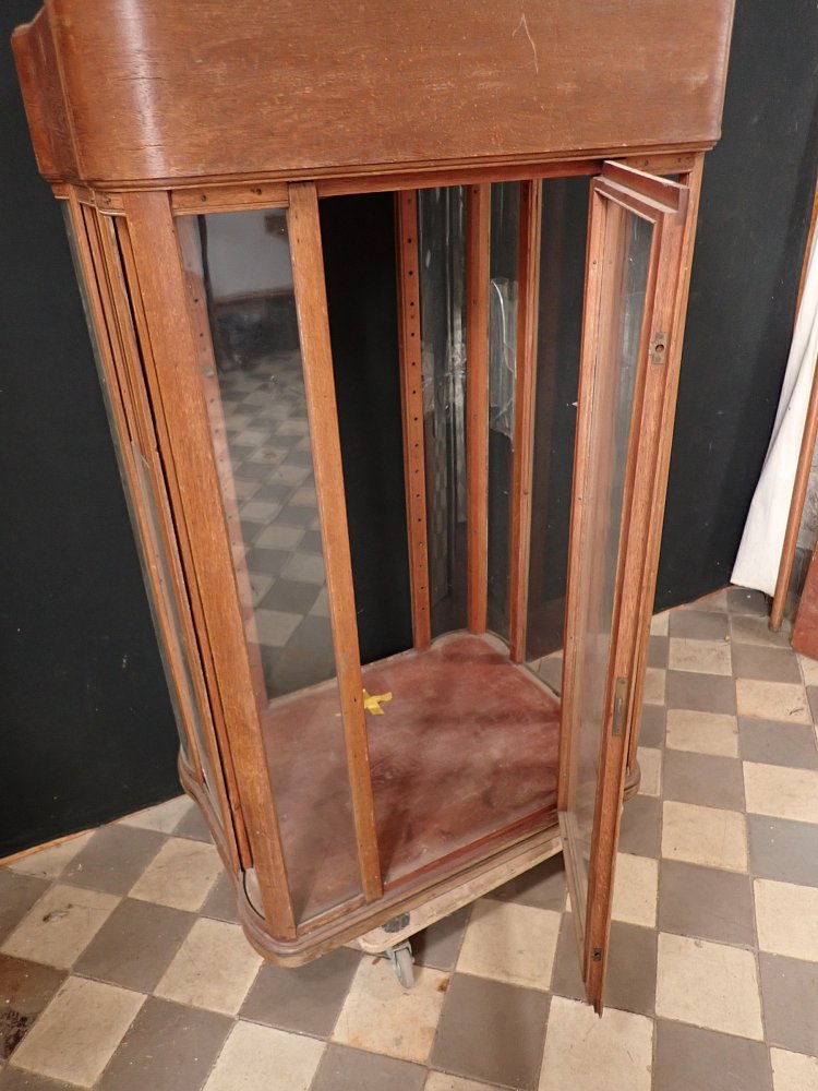 Wunderschöne historische Verkaufsvitrine. Die Holzvitrine ist ringsum mit Glasscheiben ausgestattet, teilweise sogar mit gebogenen Gläsern. Zur Bestückung gibt...
