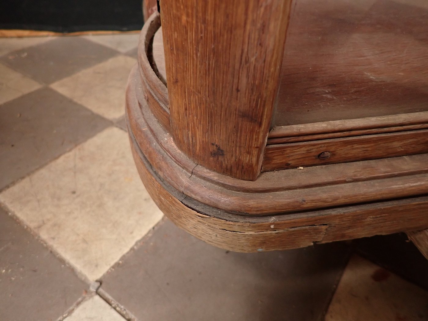 DetailansichtBarocker Hängeschrank aus massiver Eiche mit Beschlägen. Das gezapfte Wandschränkchen ist eintürig und mit zwei Regalen versehen (wobei hier das untere Regal...