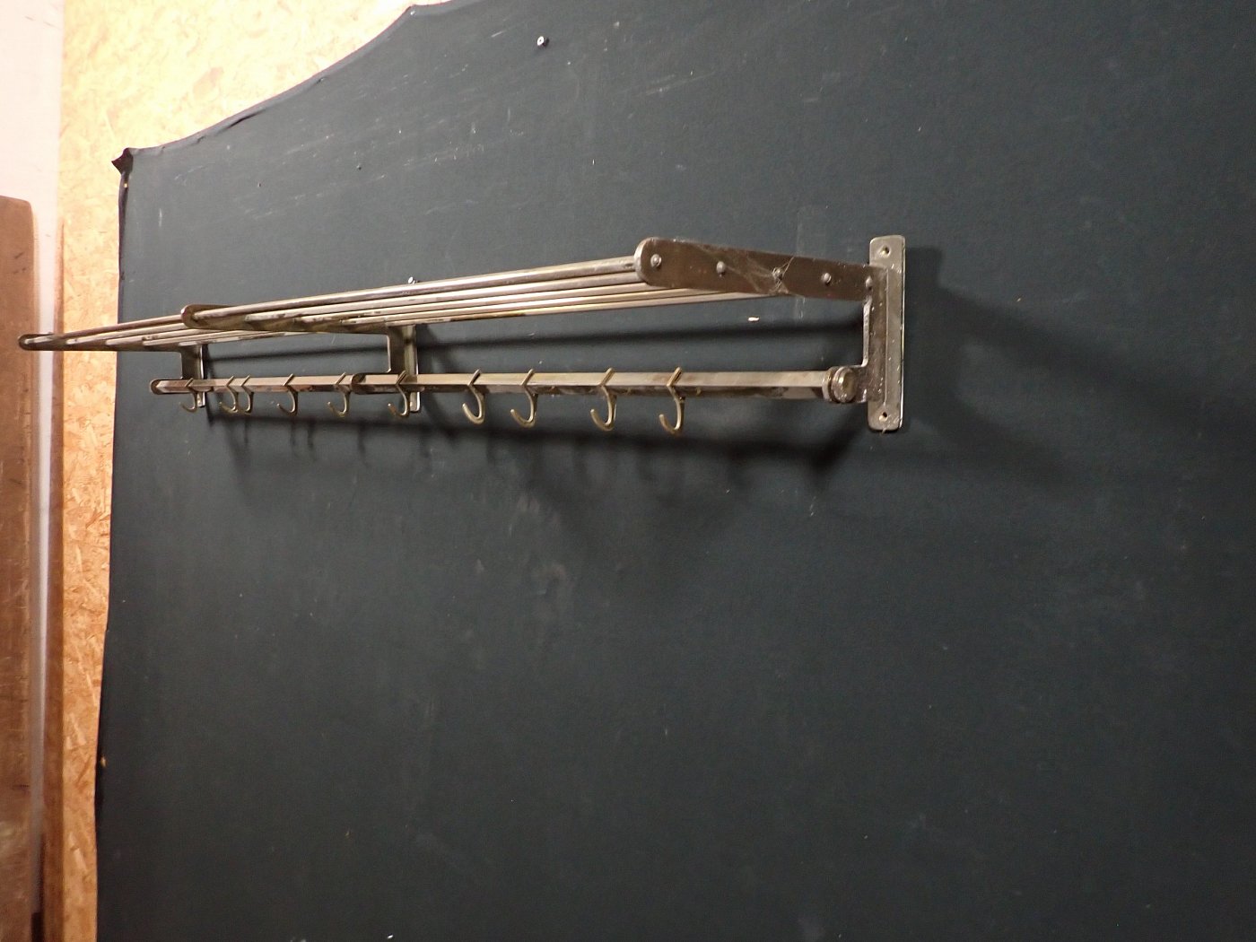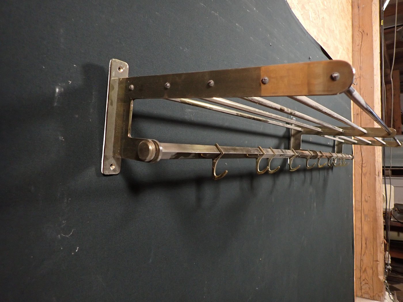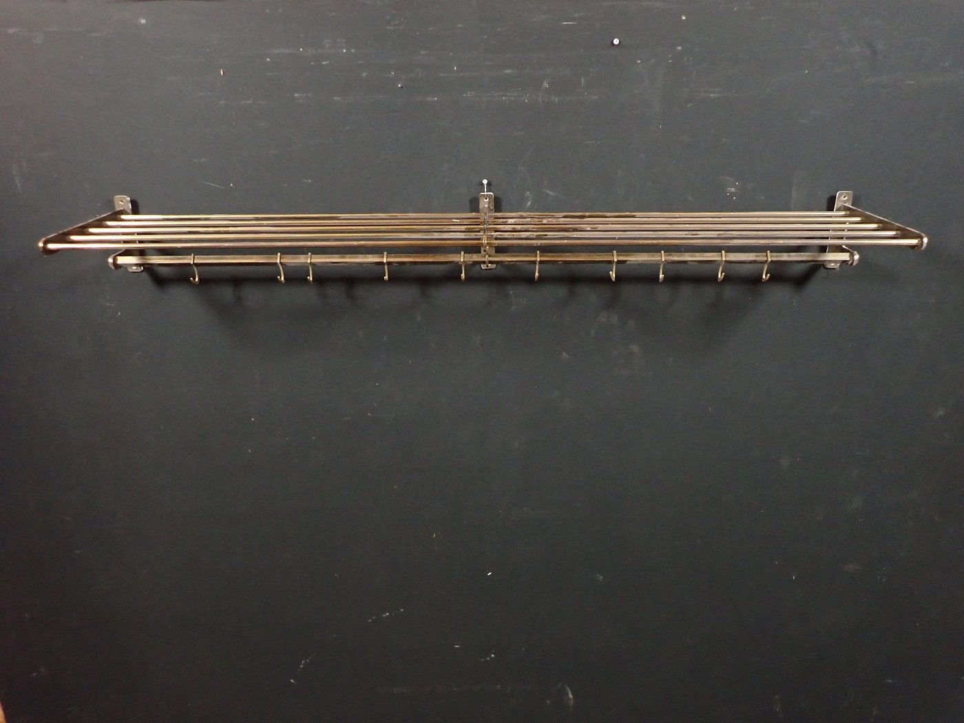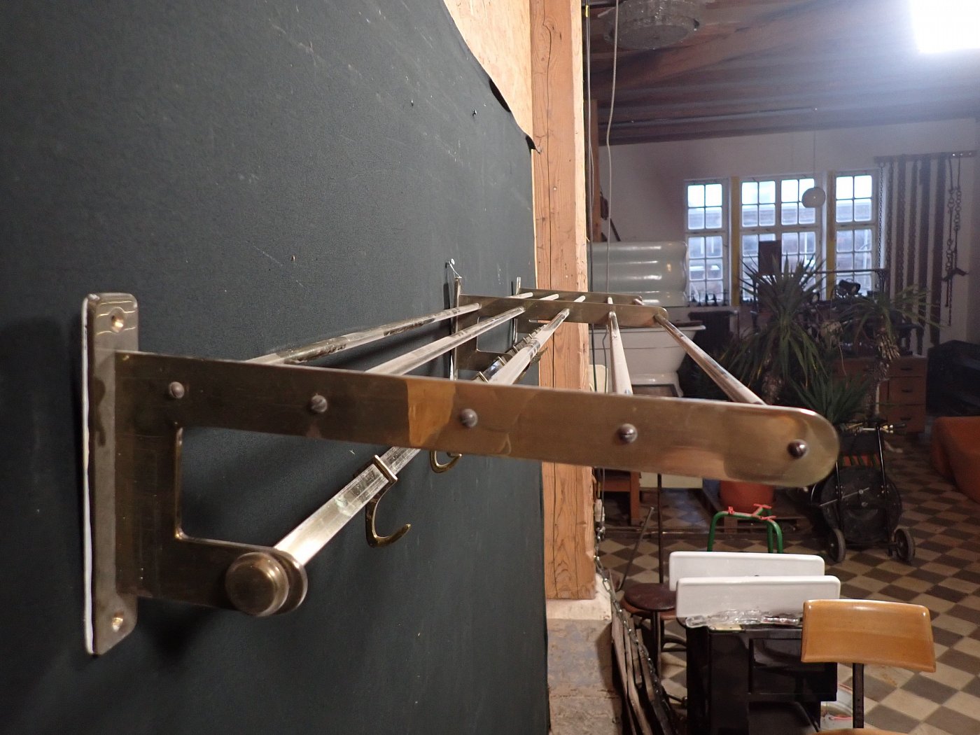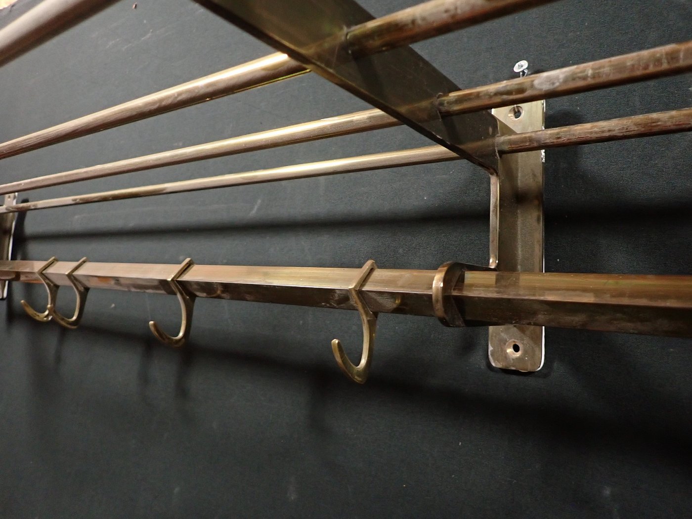 Wandgarderobe mit Hutablage. Die Messinggarderobe ist über die komplette Breite mit fünf Rundstäben ausgestattet, welche eine Hutablage bilden. Darunter ist...