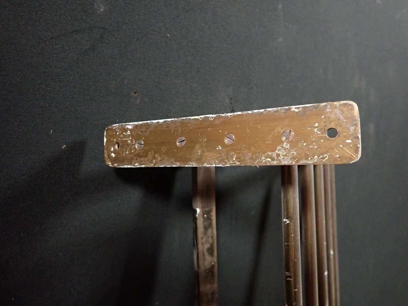 DetailansichtLange Hakenleiste aus Metall, mit 20 stumpfen, nach oben zeigenden Haken. Wahrscheinlich diente sie einmal in einer Metzgerei oder einem Laden zum aufhängen von...