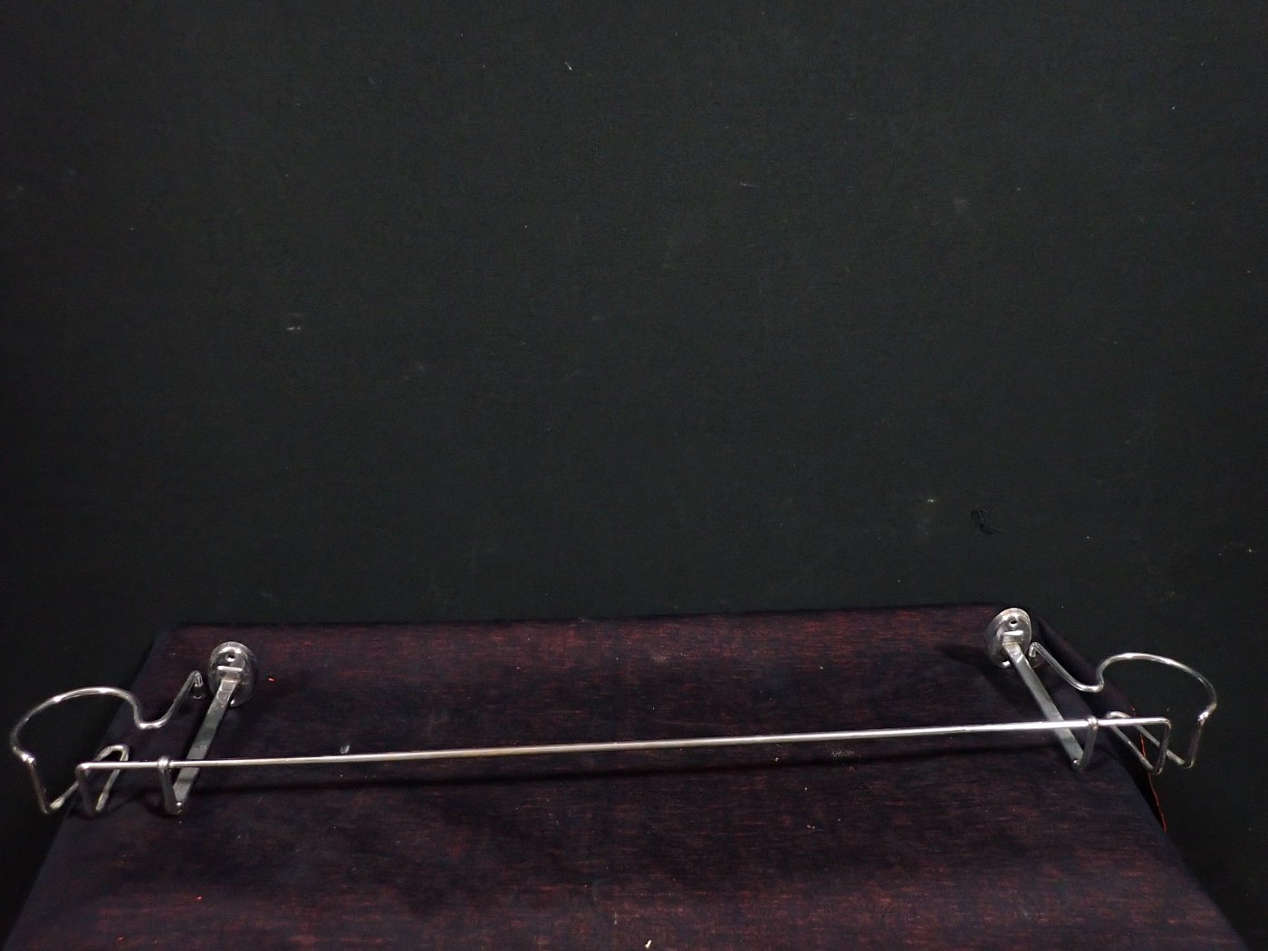 DetailansichtHandtuchhalter aus schön geformter Messinghalterung und zwei festen, parallel verlaufenden Glasstäben. Ca. aus den Jahren 1880/1890.