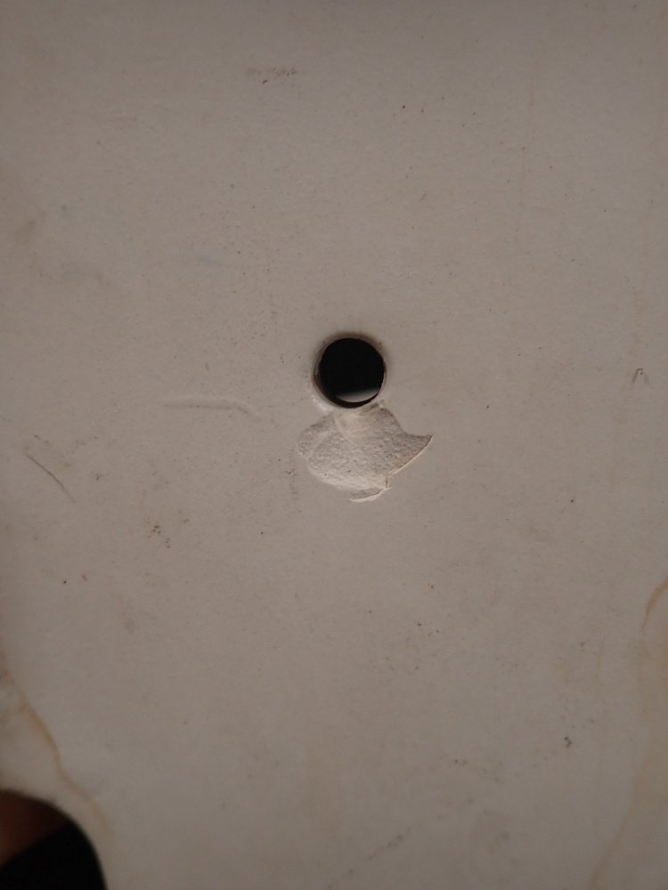 Am Waschbecken Innenrand sind kleine Abplatzer, und auf der Rückseite bei einem der vier Löcher ist ein Abplatzer am Keramik, dies sieht man angebracht nicht und hat keinen Einfluss auf die Stabilität.