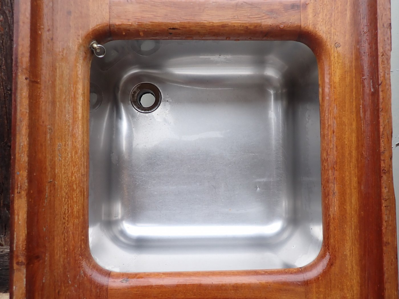 Spülbecken, Spüle aus Mahagoni, ca. B 130 x T 57 cm