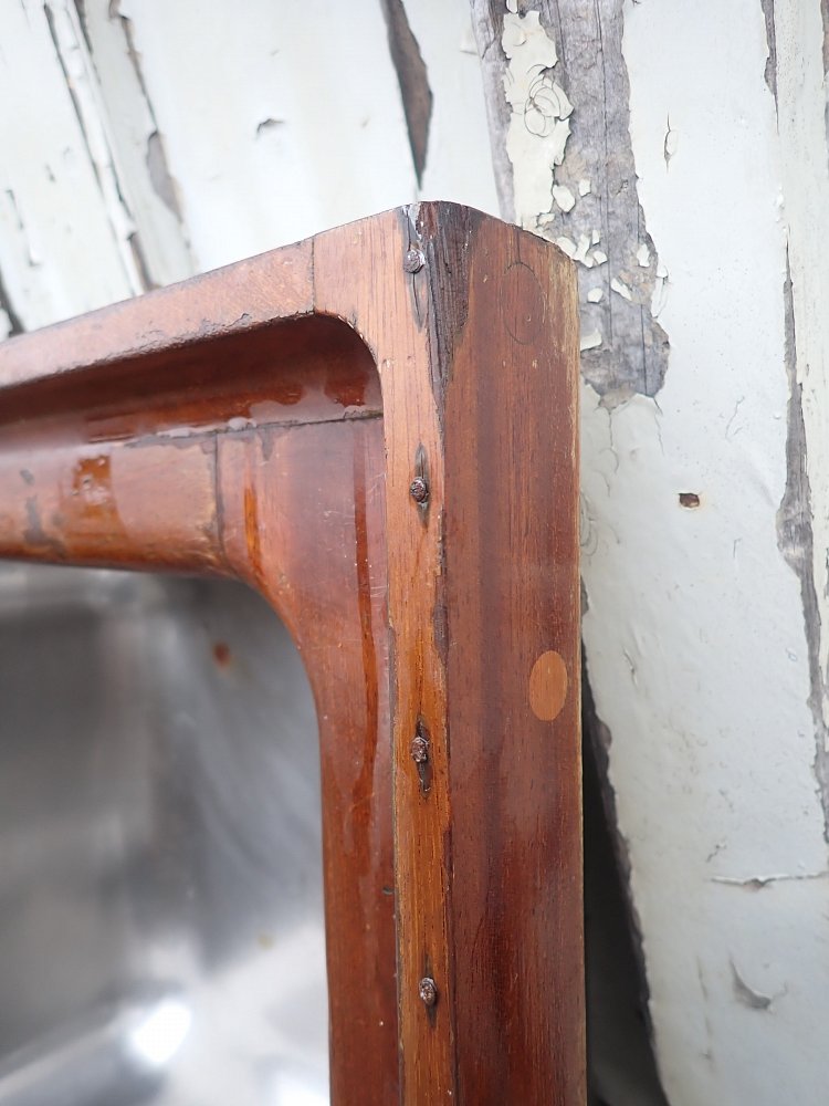 Insgesamt beurteilen wir den Zustand der Spüle als gut, auch wenn an einigen Stellen der Lack abgenutzt ist. Abgeschliffen und neu lackiert ist das seltene Spülbecken bereit für den Wiedereinbau.