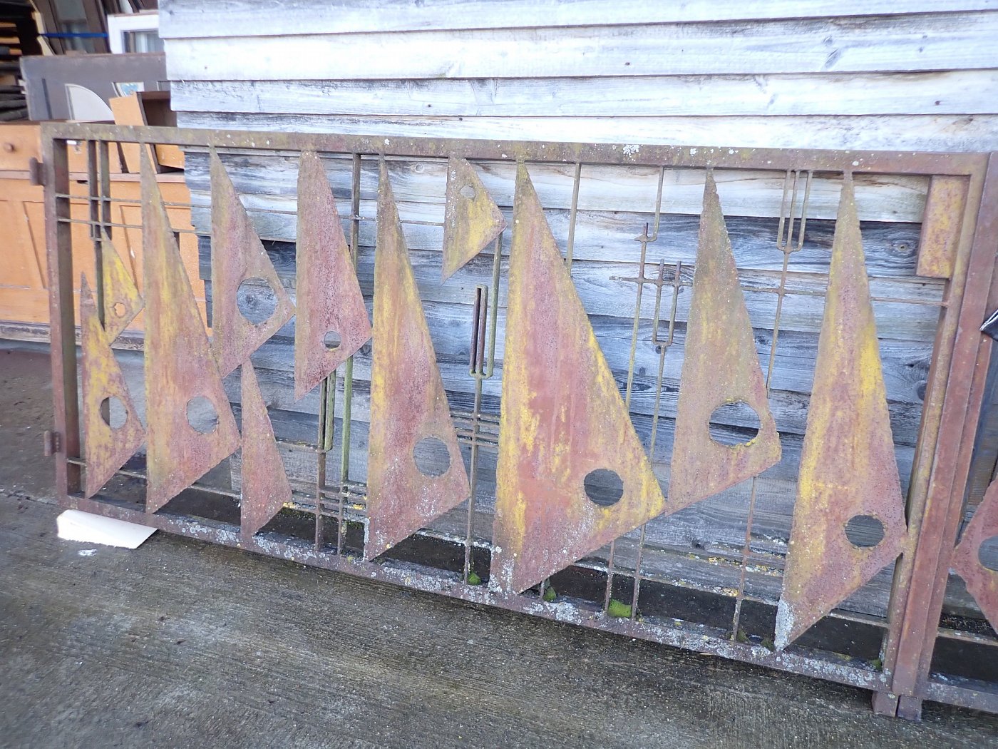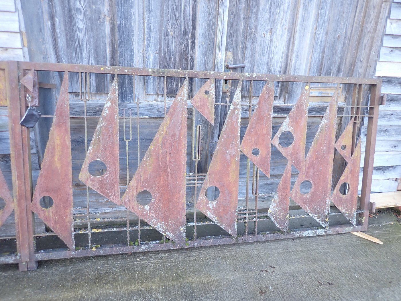 DetailansichtDas zweiflüglige Tor ist von dem Künstler Schäffenacker aus Ulm und war bis vor Kurzem noch eingebaut und im Einsatz, also voll funktionsfähig. Nicht nur der Hersteller selbst ist eine Besonderheit an diesem Tor, sondern auch das Muster und die Formen die das Gesamtbild ausmachen. Was jede Einfahrt zu einem Hingucker macht.