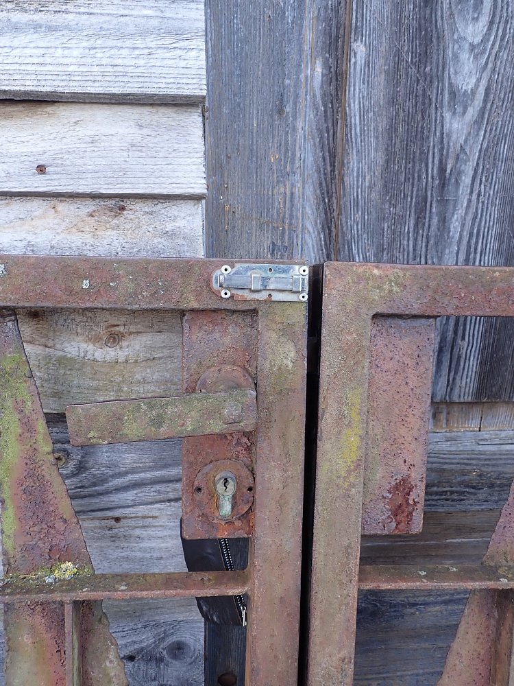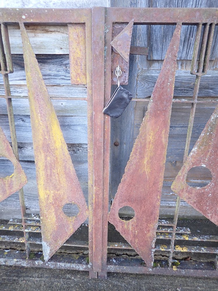 DetailansichtSchweres, solides Gartentor aus Eisen. Zeitlos schlicht im Design. Eine Klinke und die Schlosskastenleiste sind abgebrochen, aber wir haben beide Teile mit bergen...