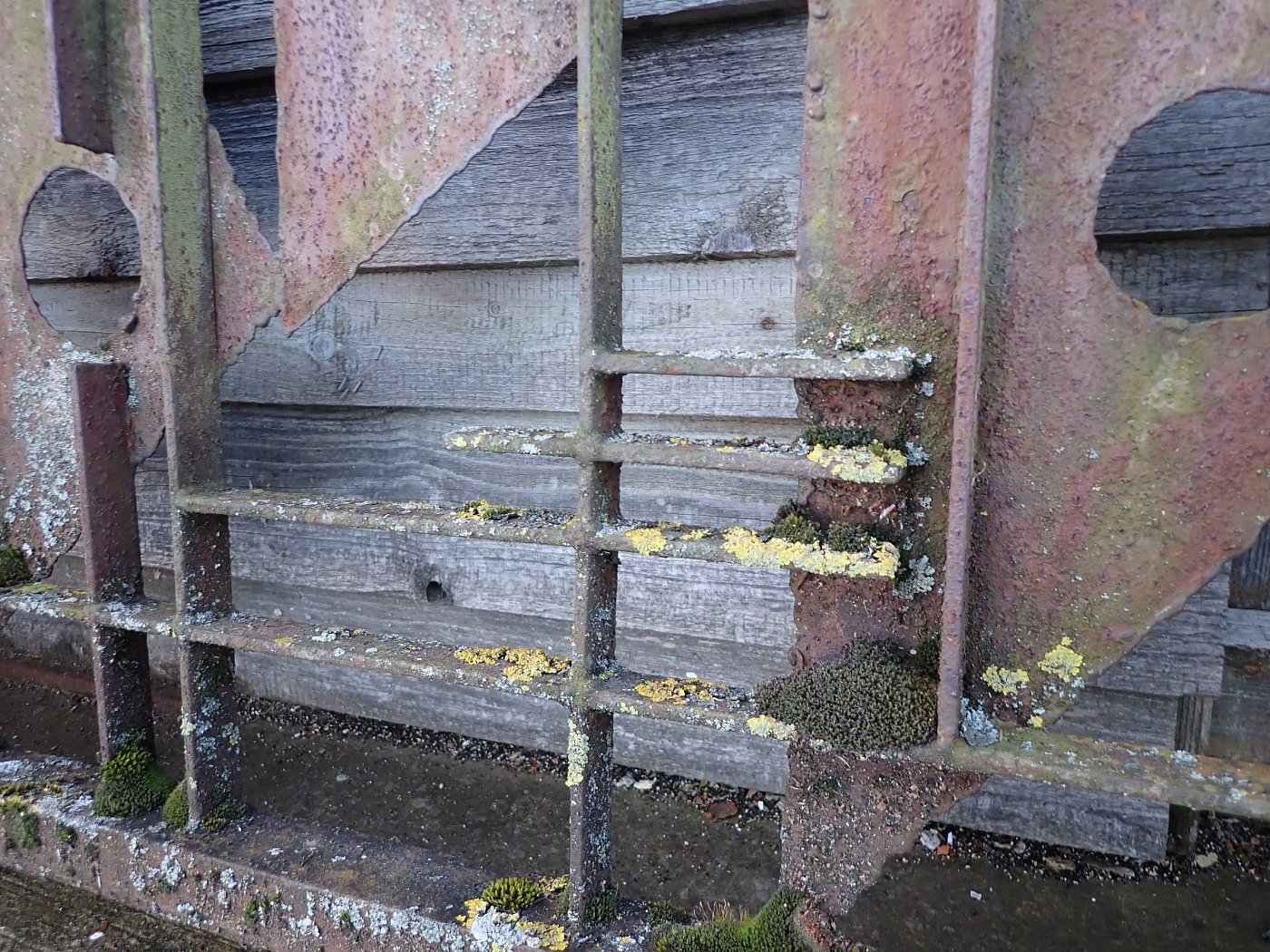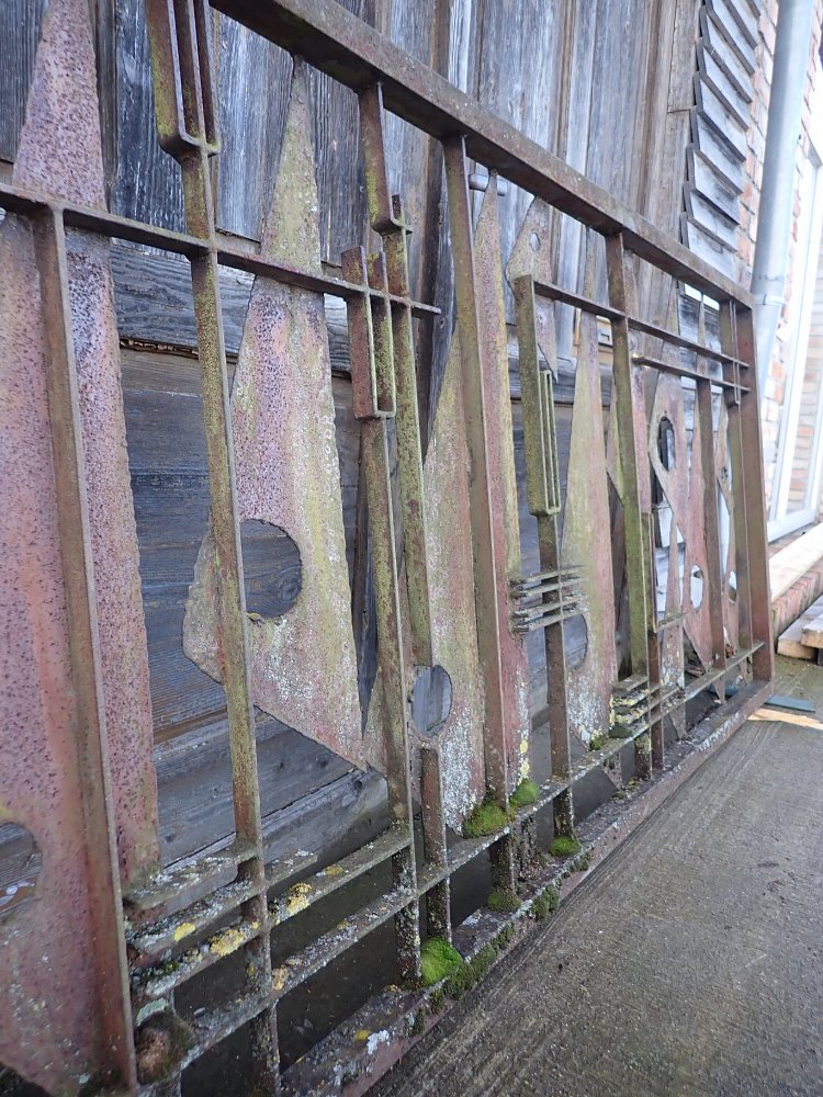 DetailansichtGroßes Tor aus Schmiedeeisen. Die beiden Torflügel waren vermutlich ursprünglich Zaunelemente, darauf lassen zumindest die angeschweißten Stäbe im unteren...