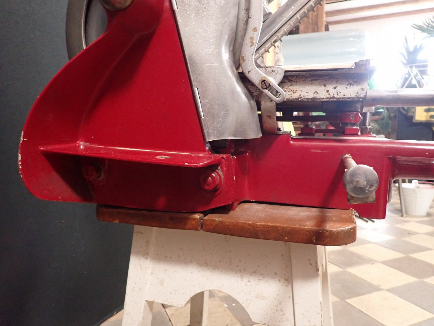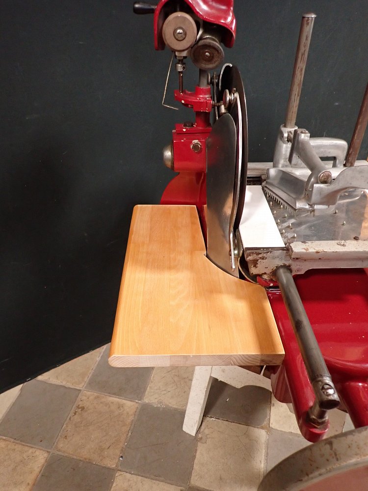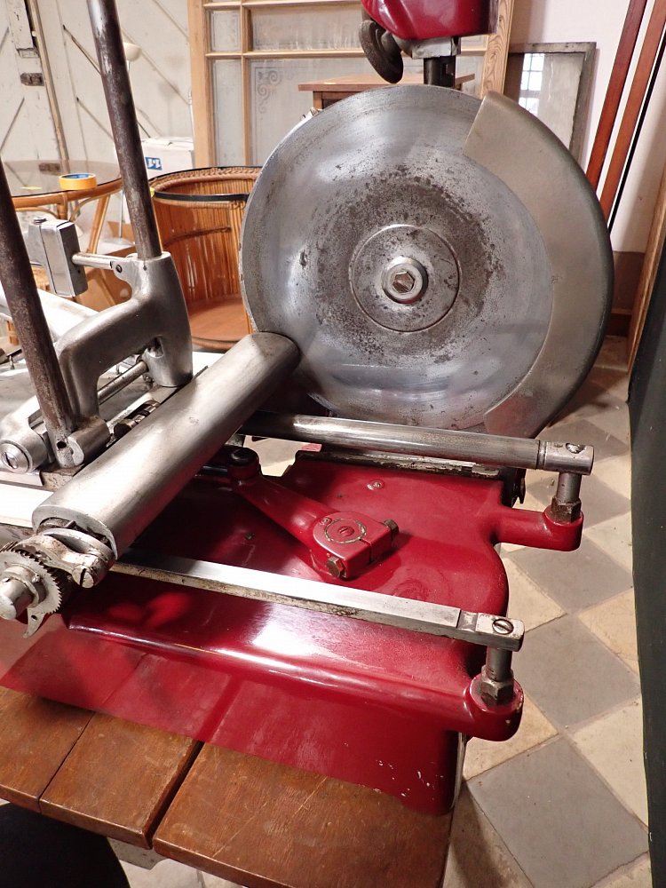 Die Aufschnittmaschine wurde gründlich gereinigt und alle Teile sind gängig - fehlt nur noch ein edler Schinken zum Aufschneiden.