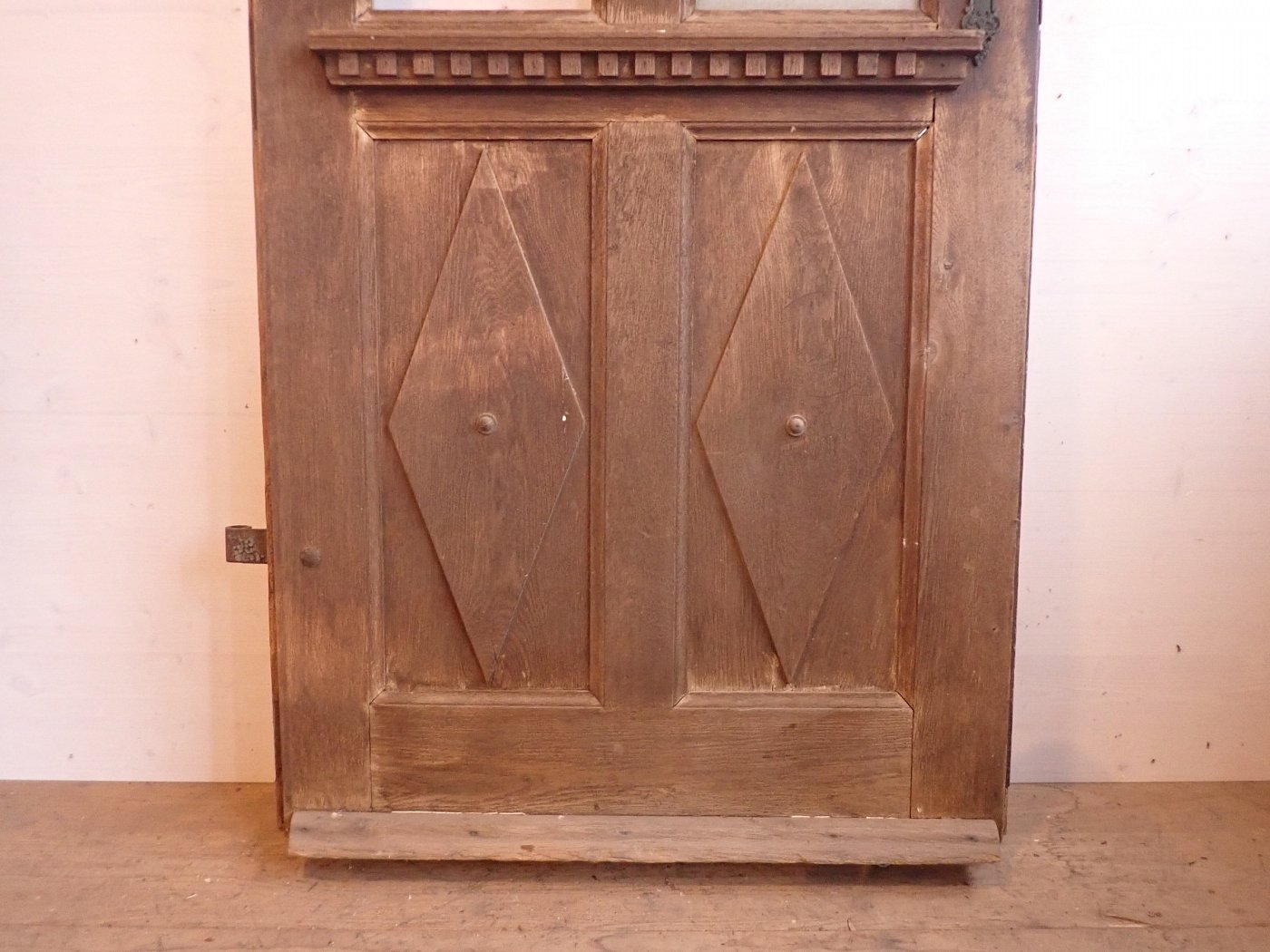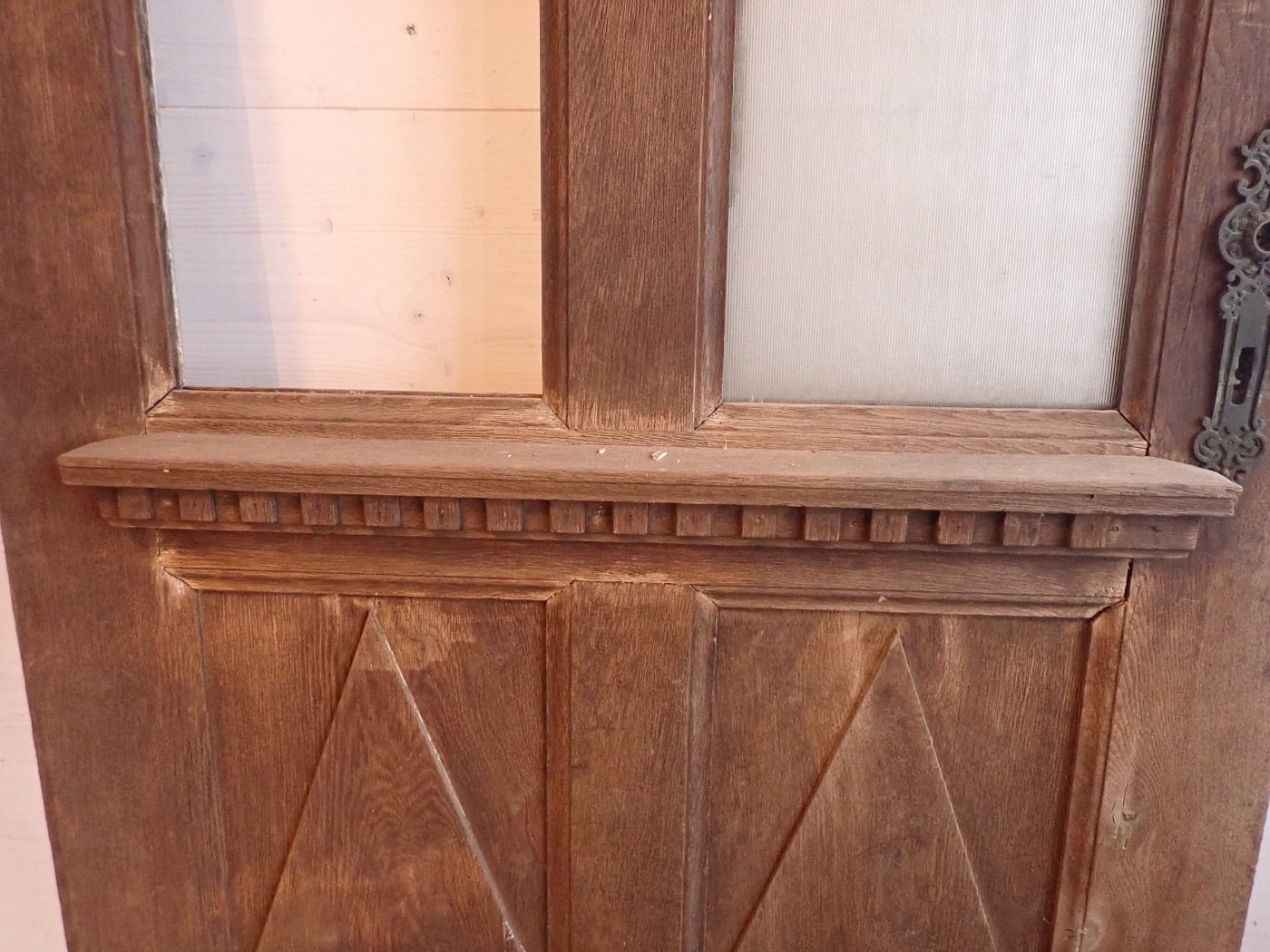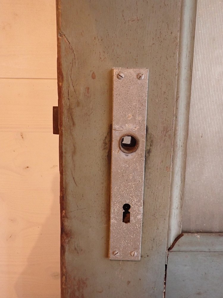 Die Tür ist in einem soliden Zustand. Die Oberfläche weist altersbedingte Gebrauchsspuren auf.