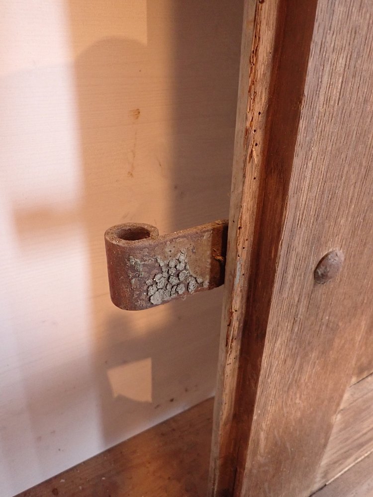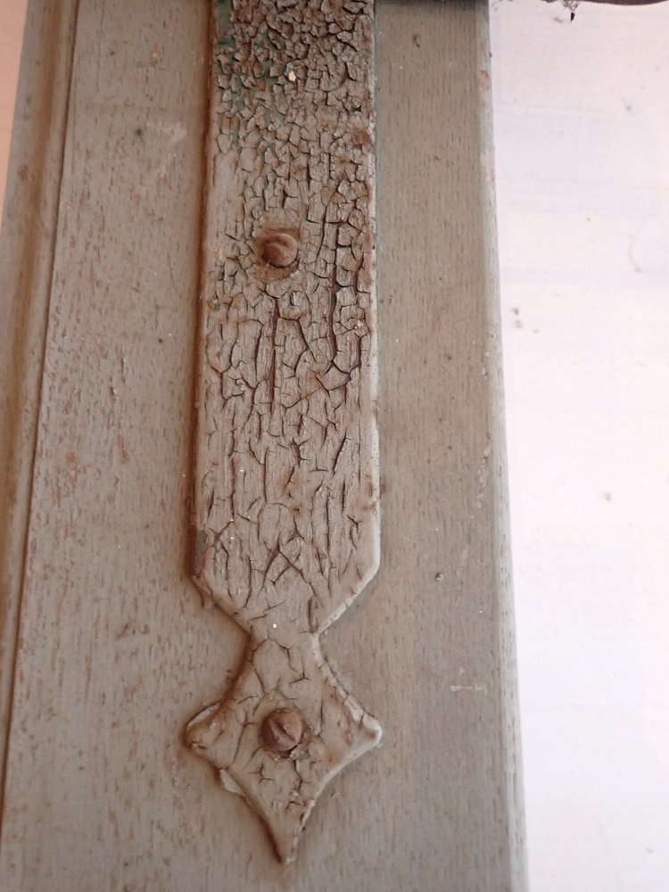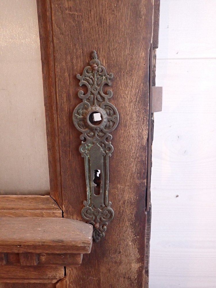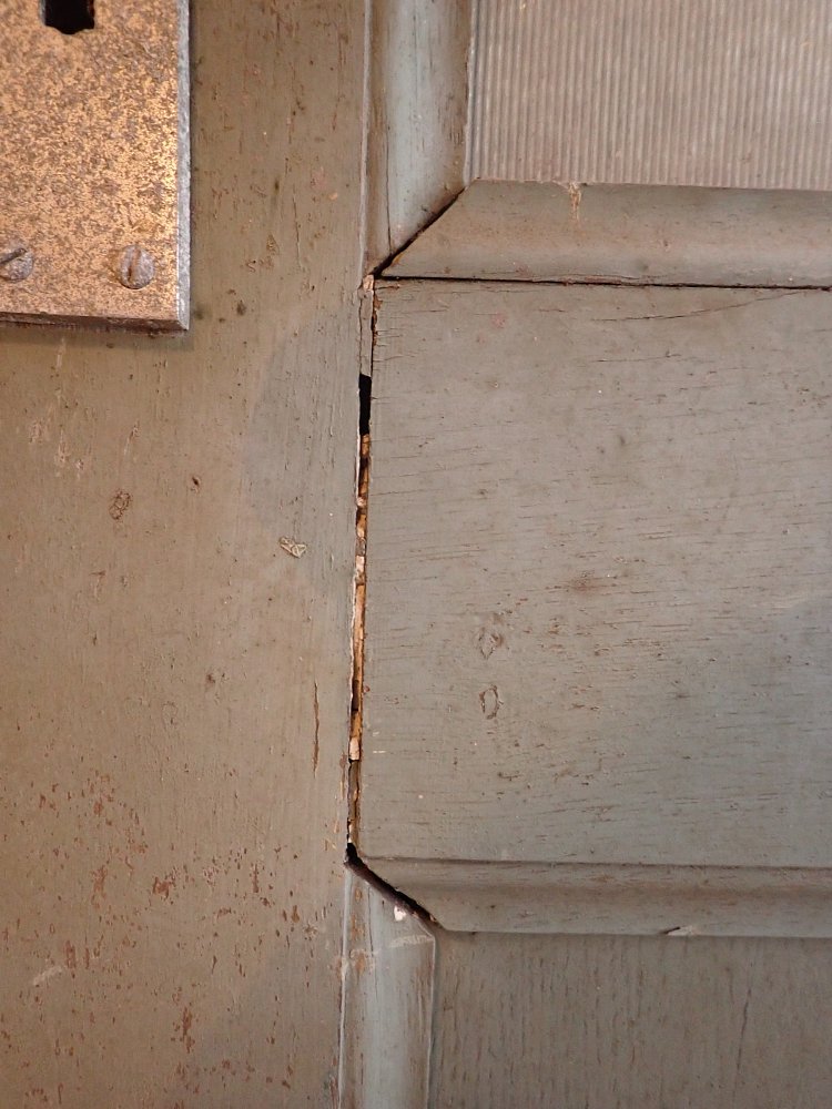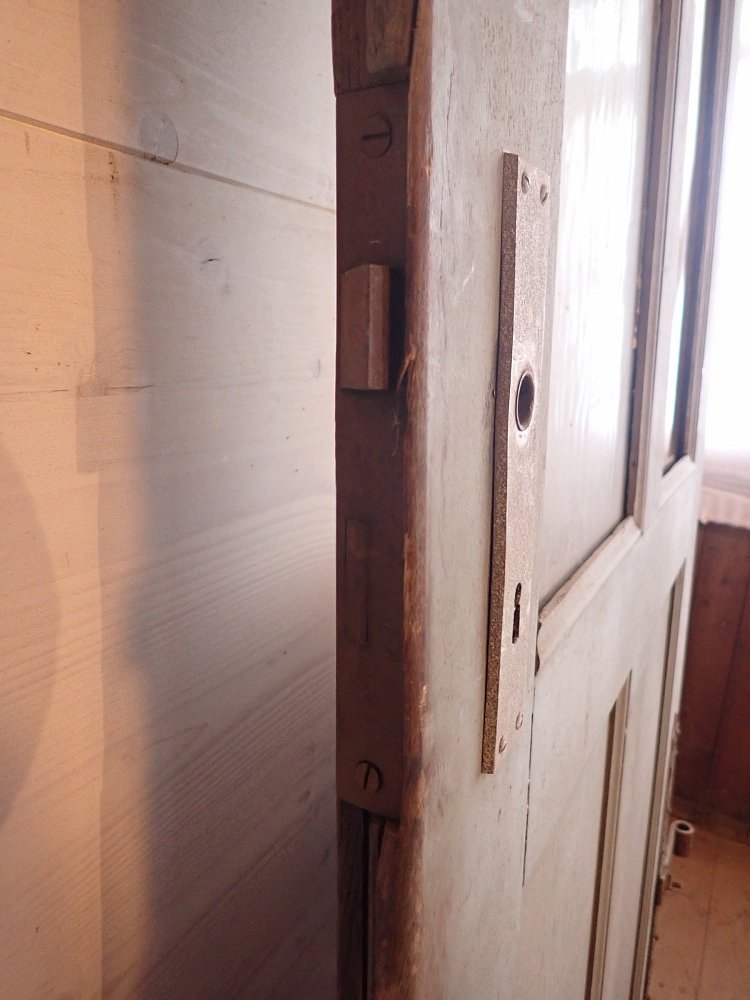 Die Tür ist in einem soliden Zustand. Die Oberfläche weist altersbedingte Gebrauchsspuren auf.