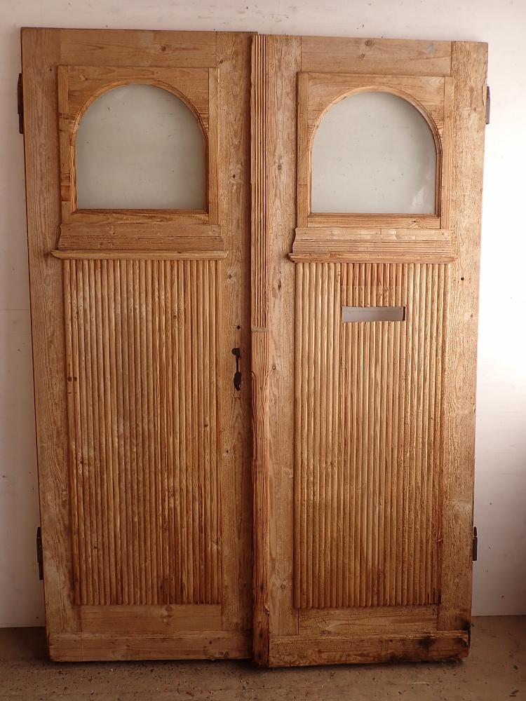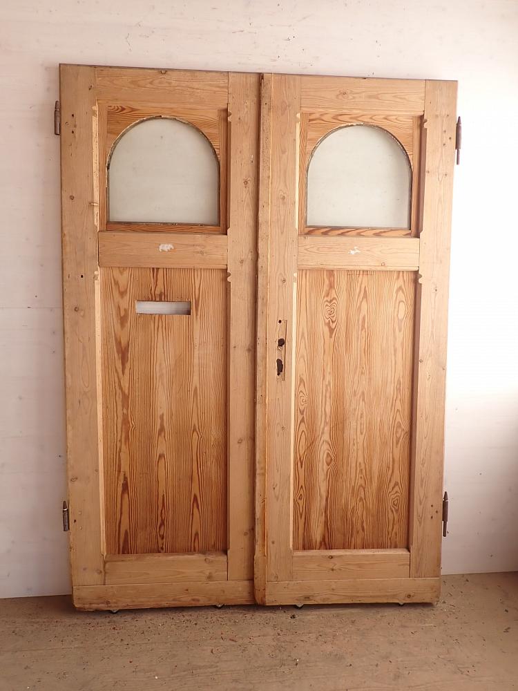 Zweiflügelige Haustür aus Weichholz.