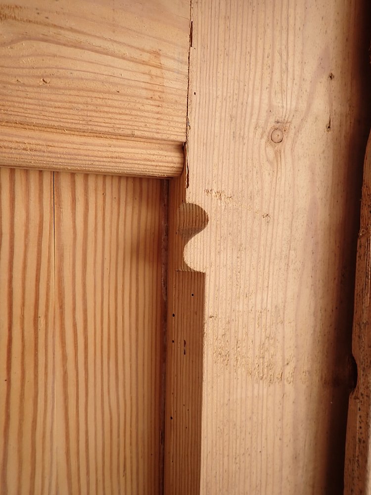 Das einzig zierende Element, das die Tür auf der Innenseite hat, sind die dekorativ gefrästen Ecken der Kassettenfüllungen.