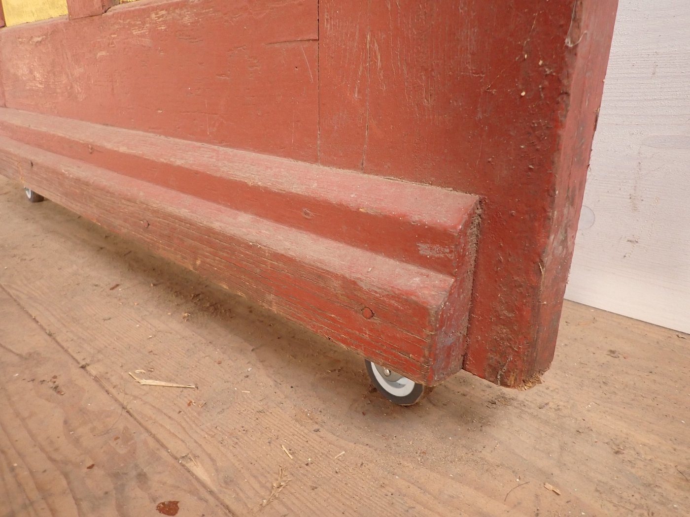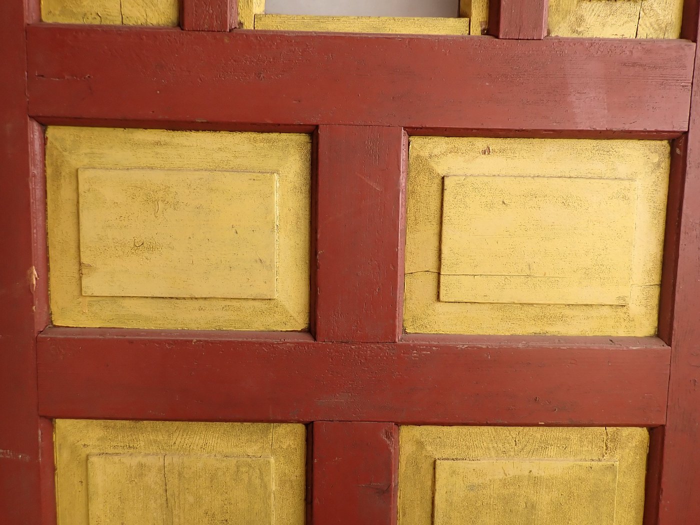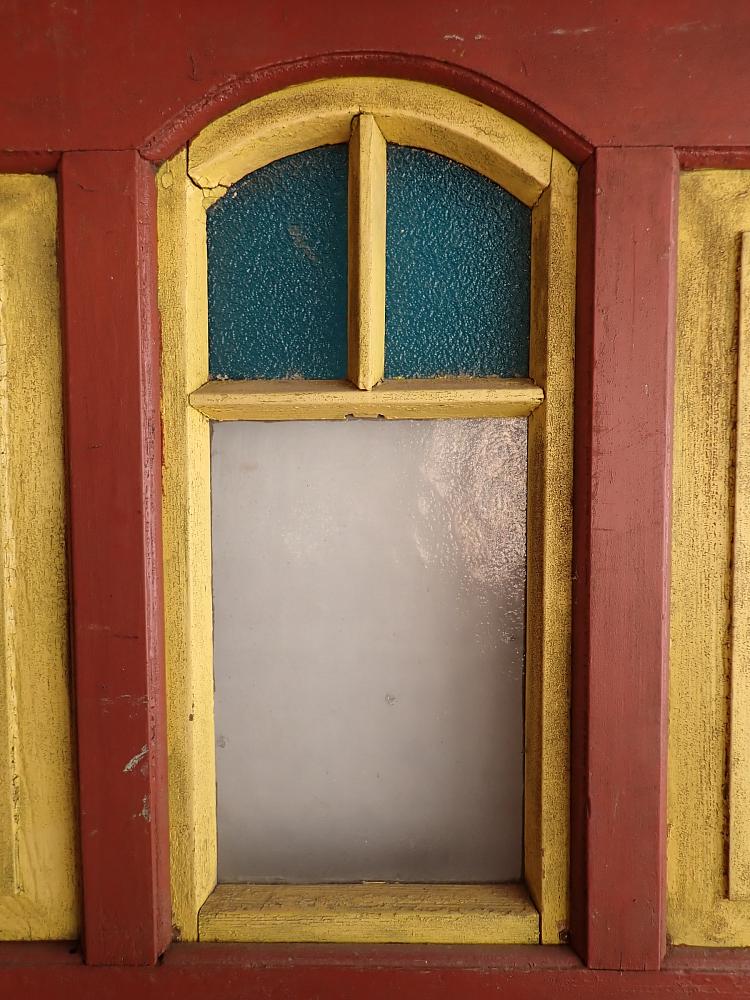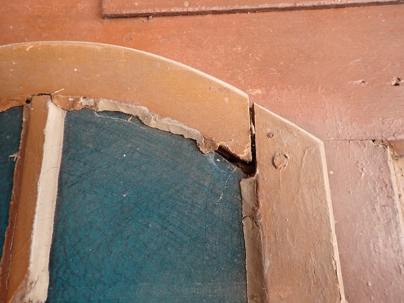 Abgesehen von den Fraßspuren des Holzwurms und einer dadurch brüchigen Ecke im unteren Bereich befindet sich die Tür in einem soliden Bergezustand.
