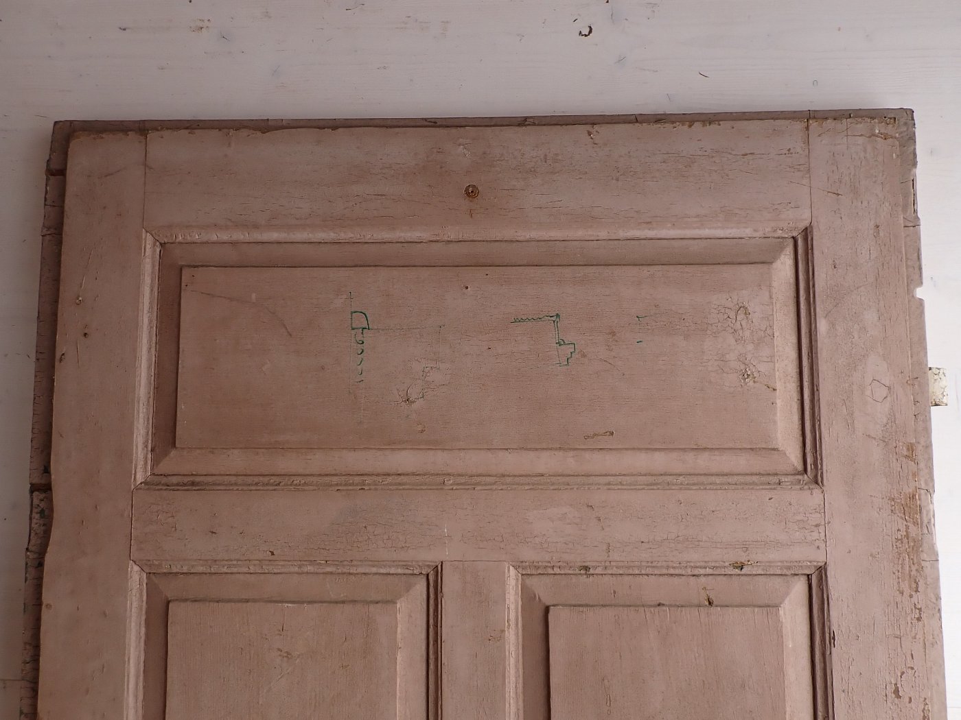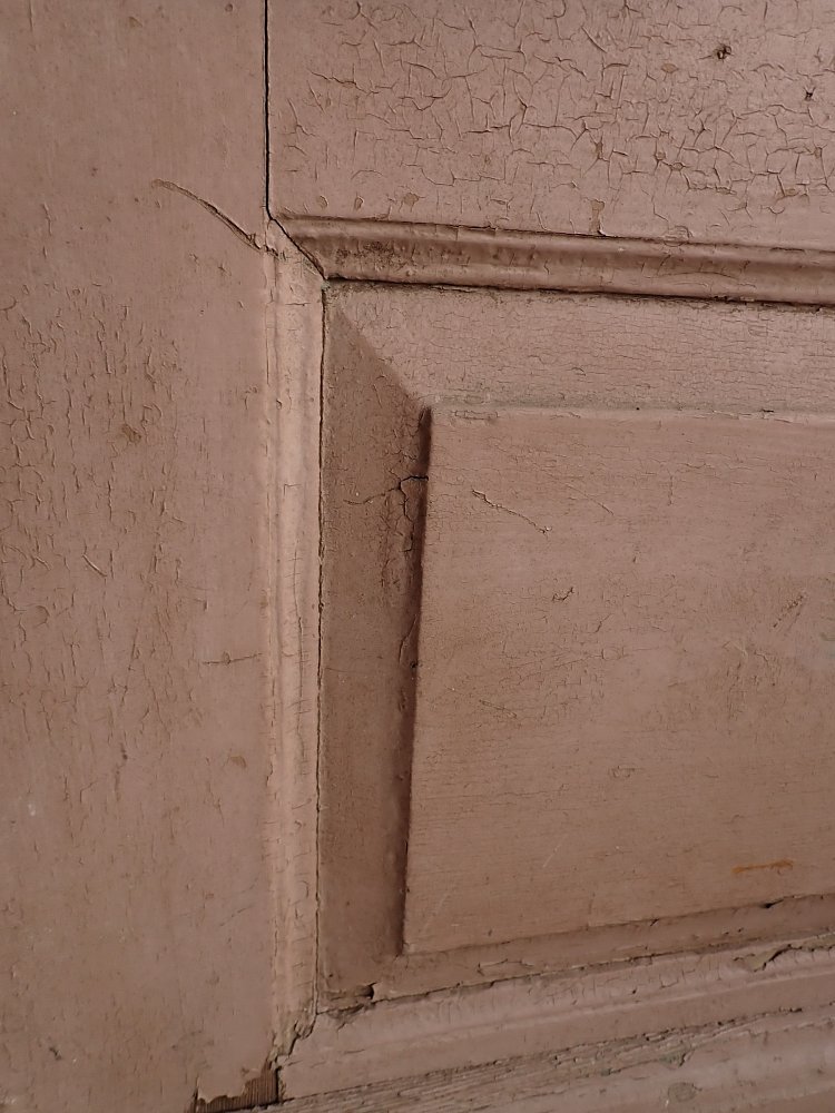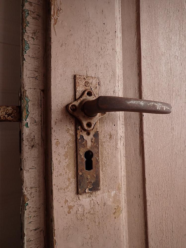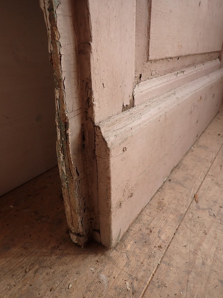 Zugegeben, aktuell hat die Tür wenig Charme, doch das mag hauptsächlich an der starken Verschmutzung und dem teilweise abblätternden Lack liegen. Dank der guten Grundsubstanz und dem klassisch schlichten Design sehen wir ein großes Potenzial in der Tür. Hier wird sich ein Ablaugen sicherlich lohnen.