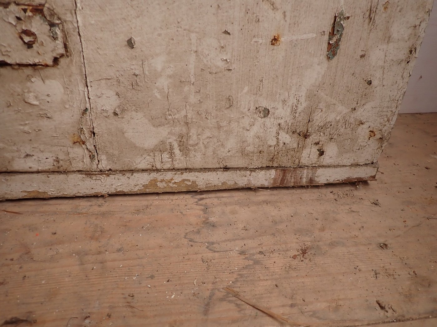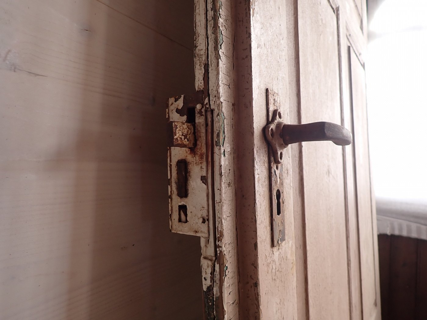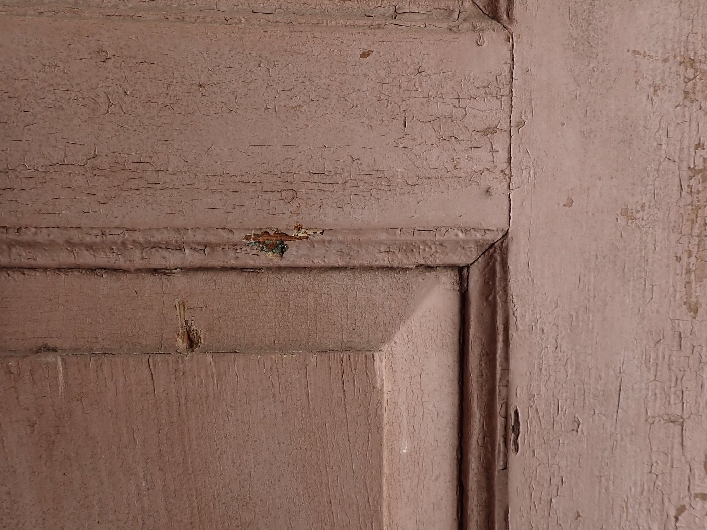 Zugegeben, aktuell hat die Tür wenig Charme, doch das mag hauptsächlich an der starken Verschmutzung und dem teilweise abblätternden Lack liegen. Dank der guten Grundsubstanz und dem klassisch schlichten Design sehen wir ein großes Potenzial in der Tür. Hier wird sich ein Ablaugen sicherlich lohnen.