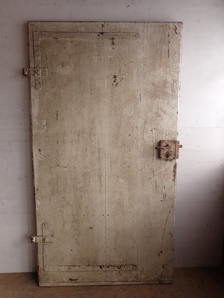 Ausgestattet ist die massive Tür mit einem Kastenschloss, einer Drückergarnitur aus Eisen und geschmiedeten Winkelbändern.