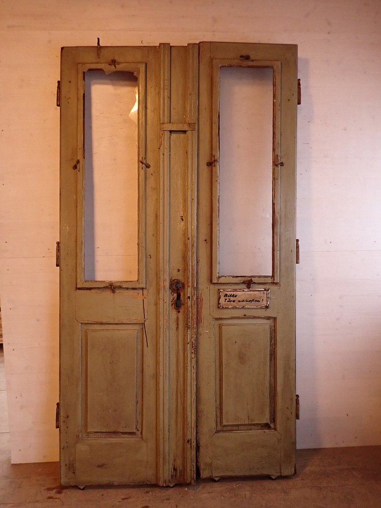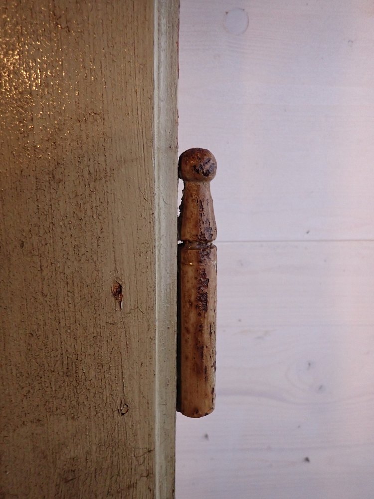 Insgesamt befindet sich die Tür in einem soliden Bergezustand, braucht vor einem Wiedereinbau aber auf jeden Fall einige Stunden Zuwendung, denn aktuell fehlen beispielsweise das Schloss sowie eine passende Drückergarnitur.