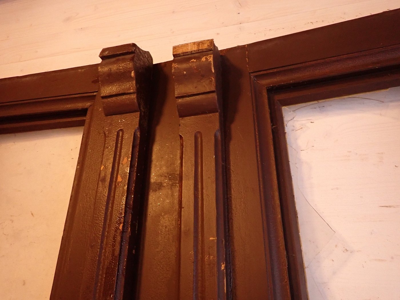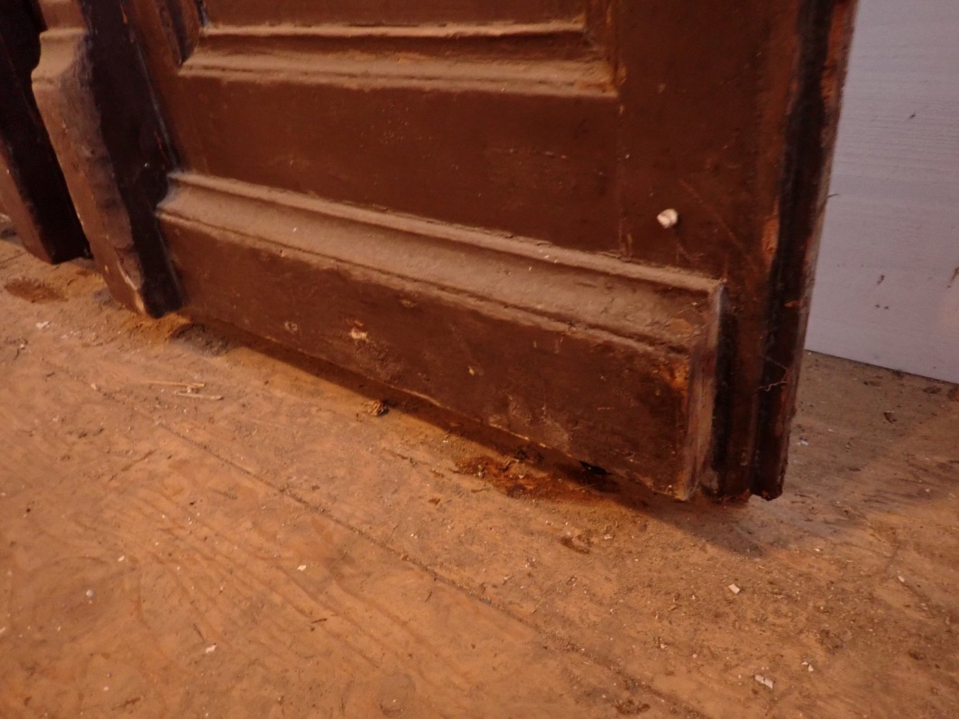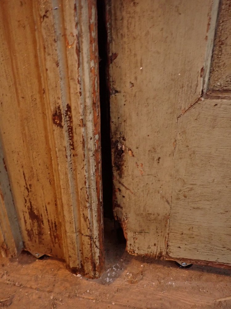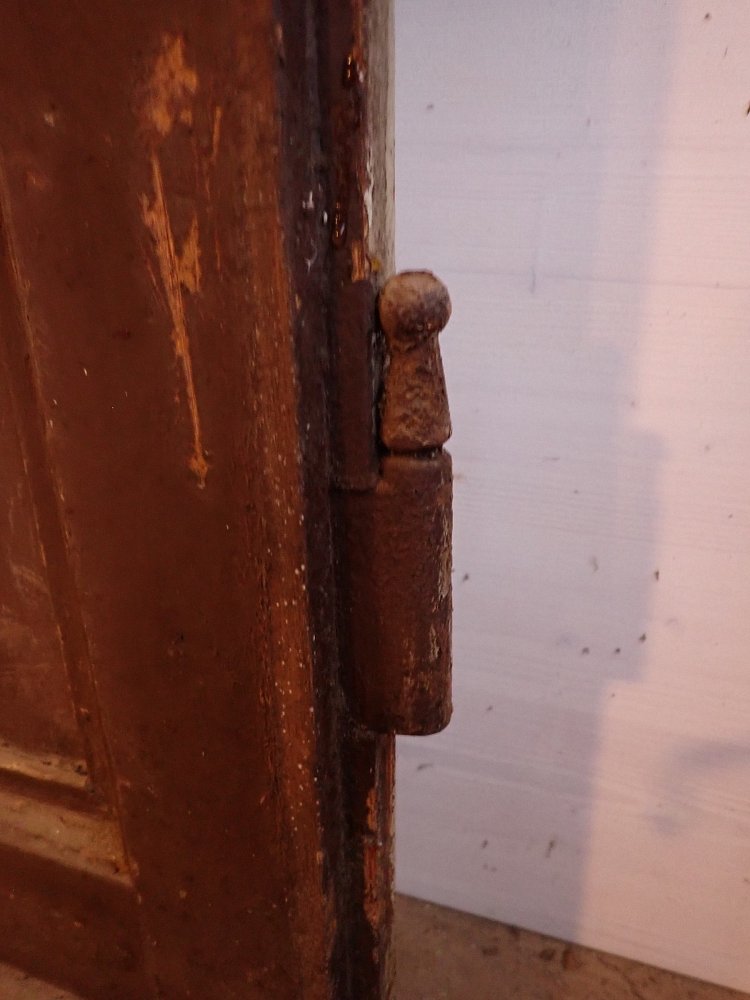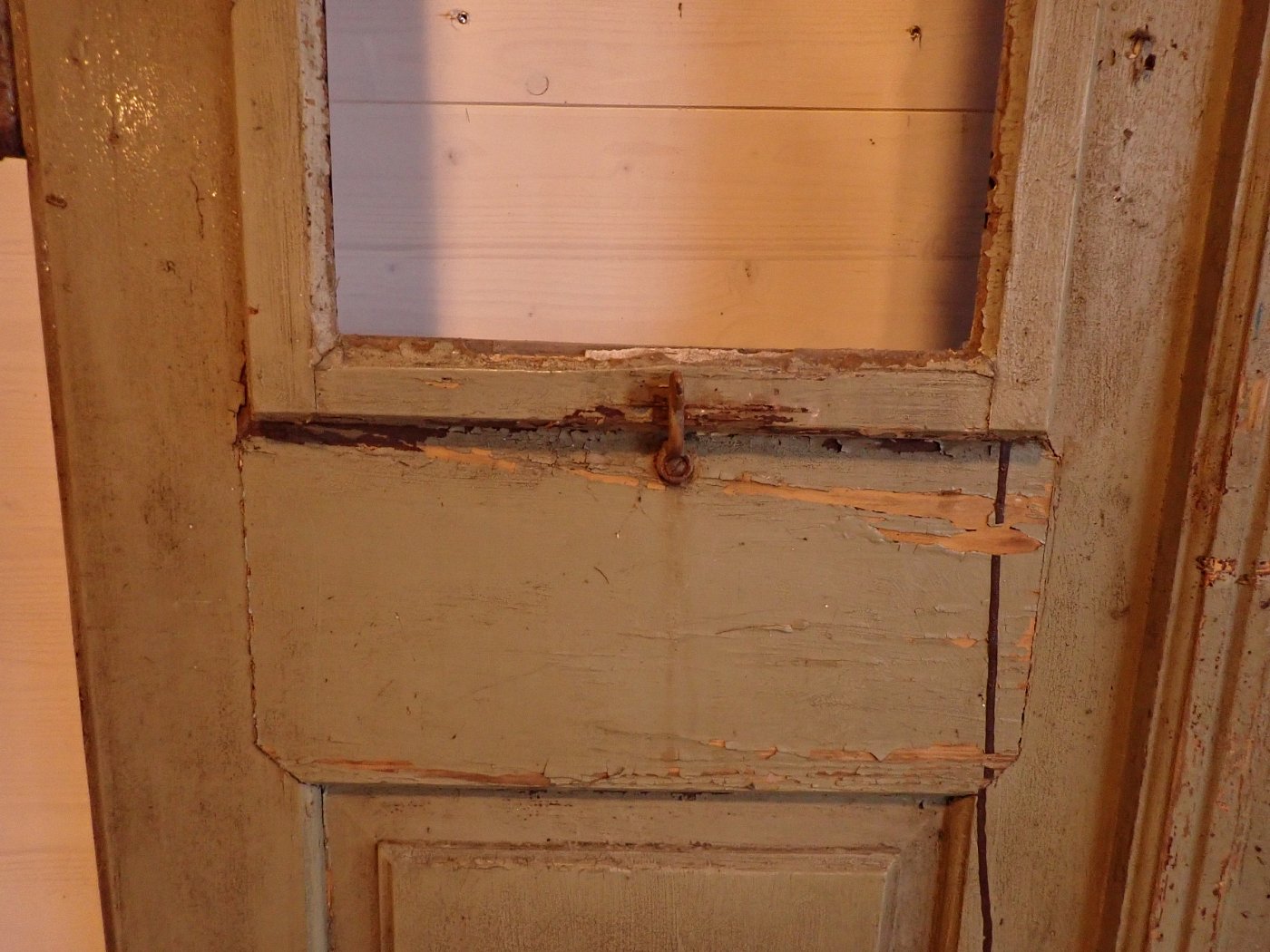 Ungewöhnlicherweise befindet sich der Lack auf der Türinnenseite in einem deutlich schlechteren Zustand als der braune Lack auf der Außenseite. Hier können wir ein Ablaugen der Tür empfehlen, um danach in der weiteren Gestaltung komplett frei zu sein.