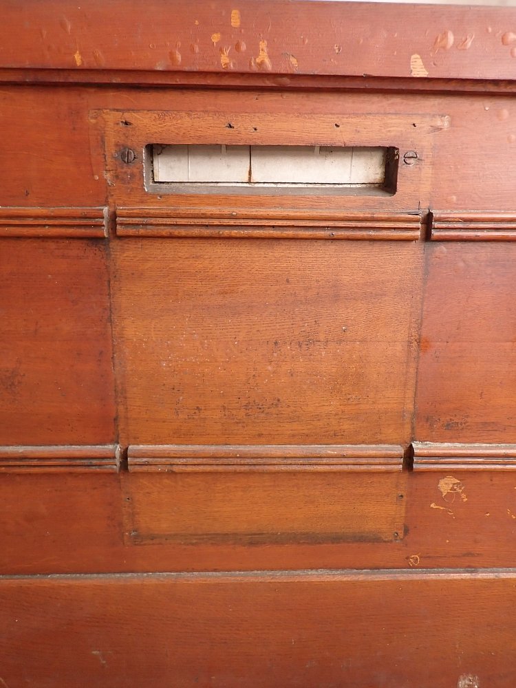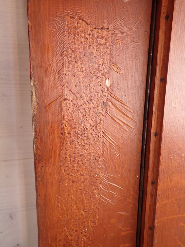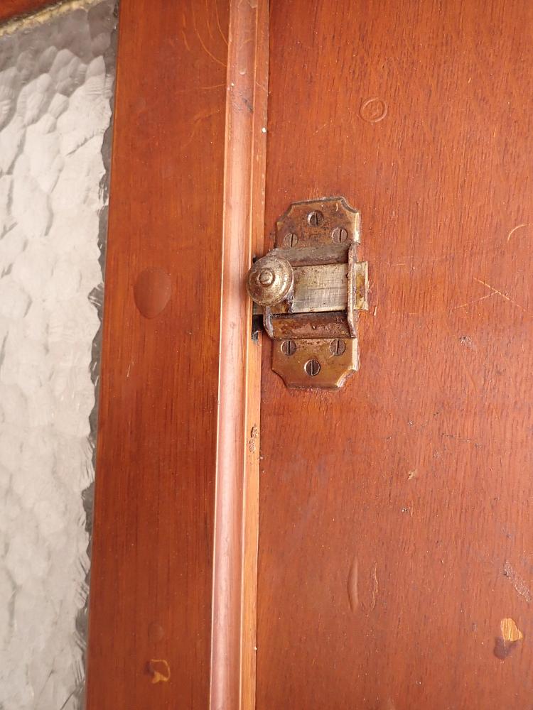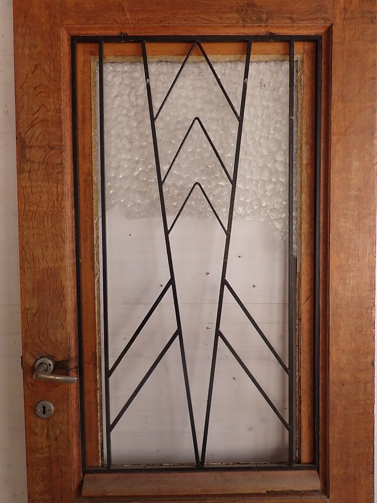 Insgesamt befindet sich die Tür in einem ausgesprochen guten Zustand, lediglich die zerbrochene Glasscheibe muss vor einem Wiedereinbau ausgetauscht werden. In diesem Zuge könnte die Tür natürlich auch auf den aktuellsten energetischen und sicherheitstechnischen Standard gebracht werden. Gerne erstellen wir Ihnen hierzu ein Angebot.