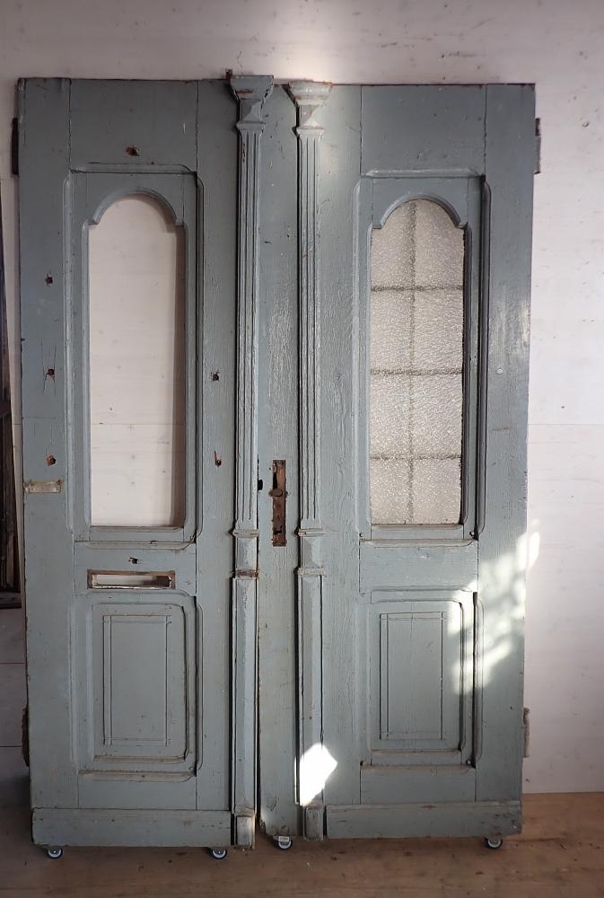 Die beiden Flügel sind symmetrisch gearbeitet - im unteren Bereich ganz klassisch mit profilierten Kassettenfüllungen und oben mit großen Festverglasungen. Im Gehflügel ist eine Strukturglasscheibe verbaut und vor dem Fenster ist ein geschmiedetes Gitter angebracht.