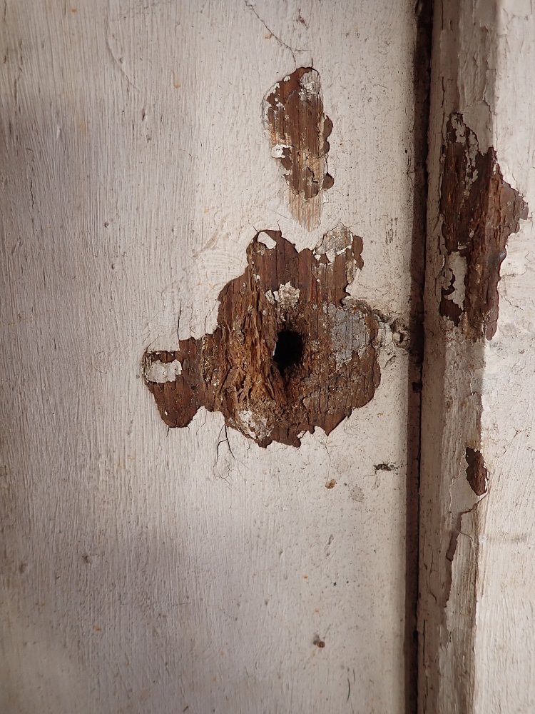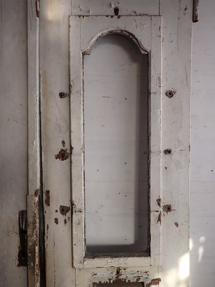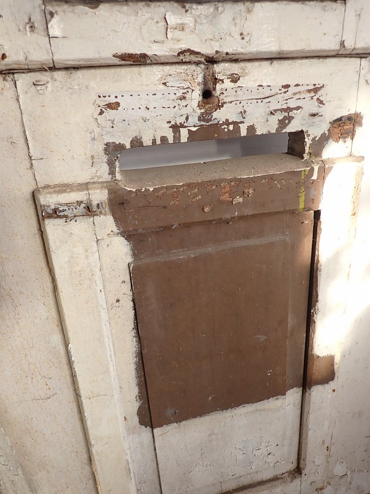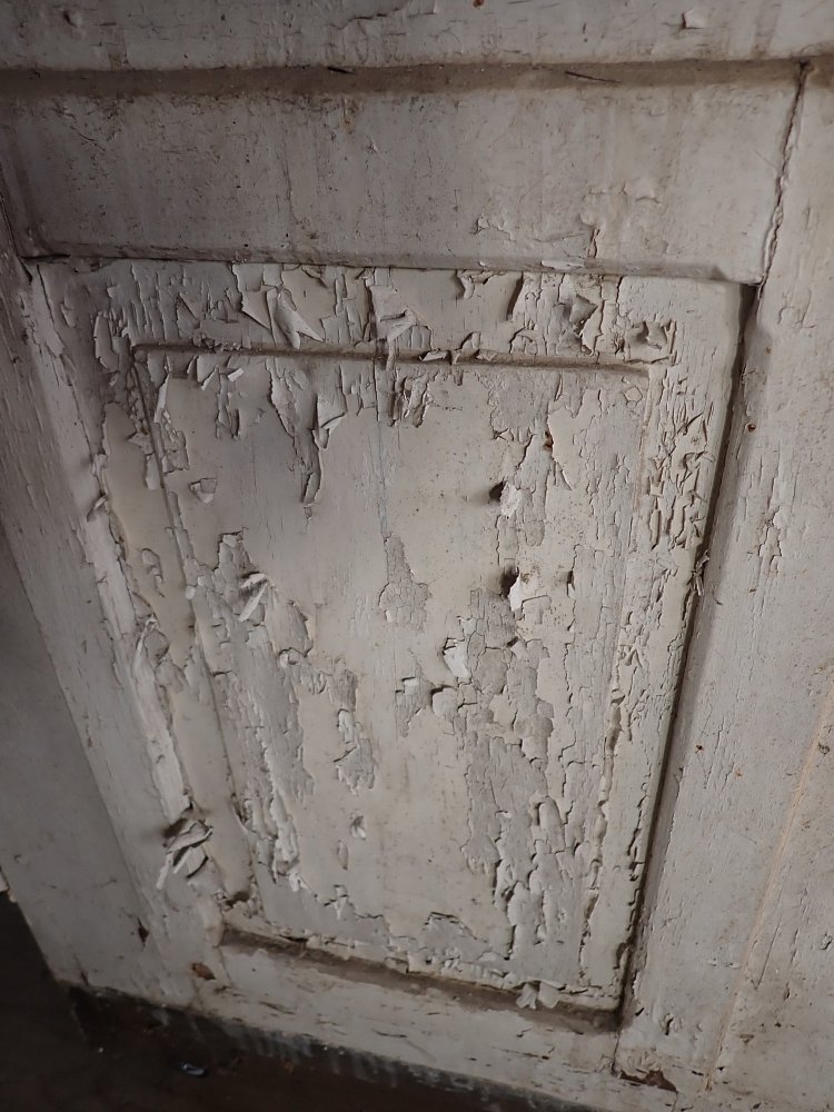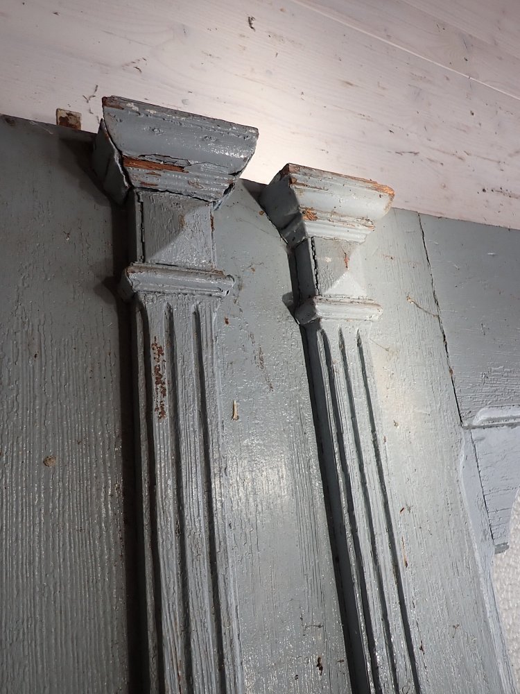 Wenn erst einmal die zahlreichen alten Farbschichten entfernt sind und die fehlenden Elemente ergänzt wurden, kann die schön gestaltete Tür wieder in neuem alten Glanz erstrahlen.