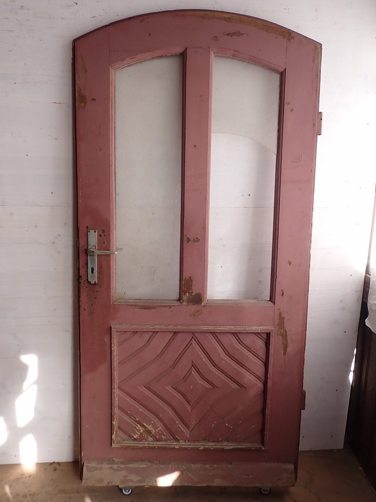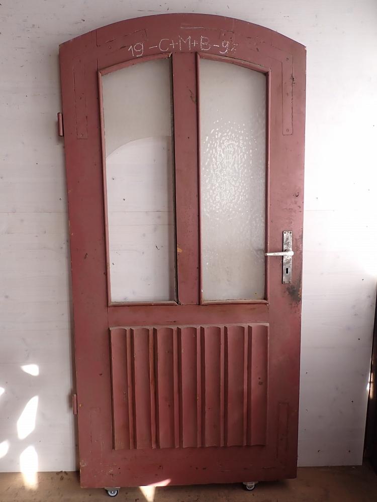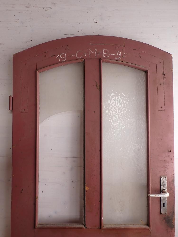Haustür aus Eichenholz und mit Rundbogen, DIN links, ca. B 92 x H 191,5 cm
