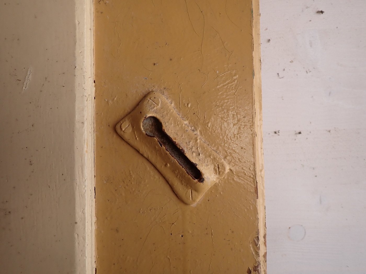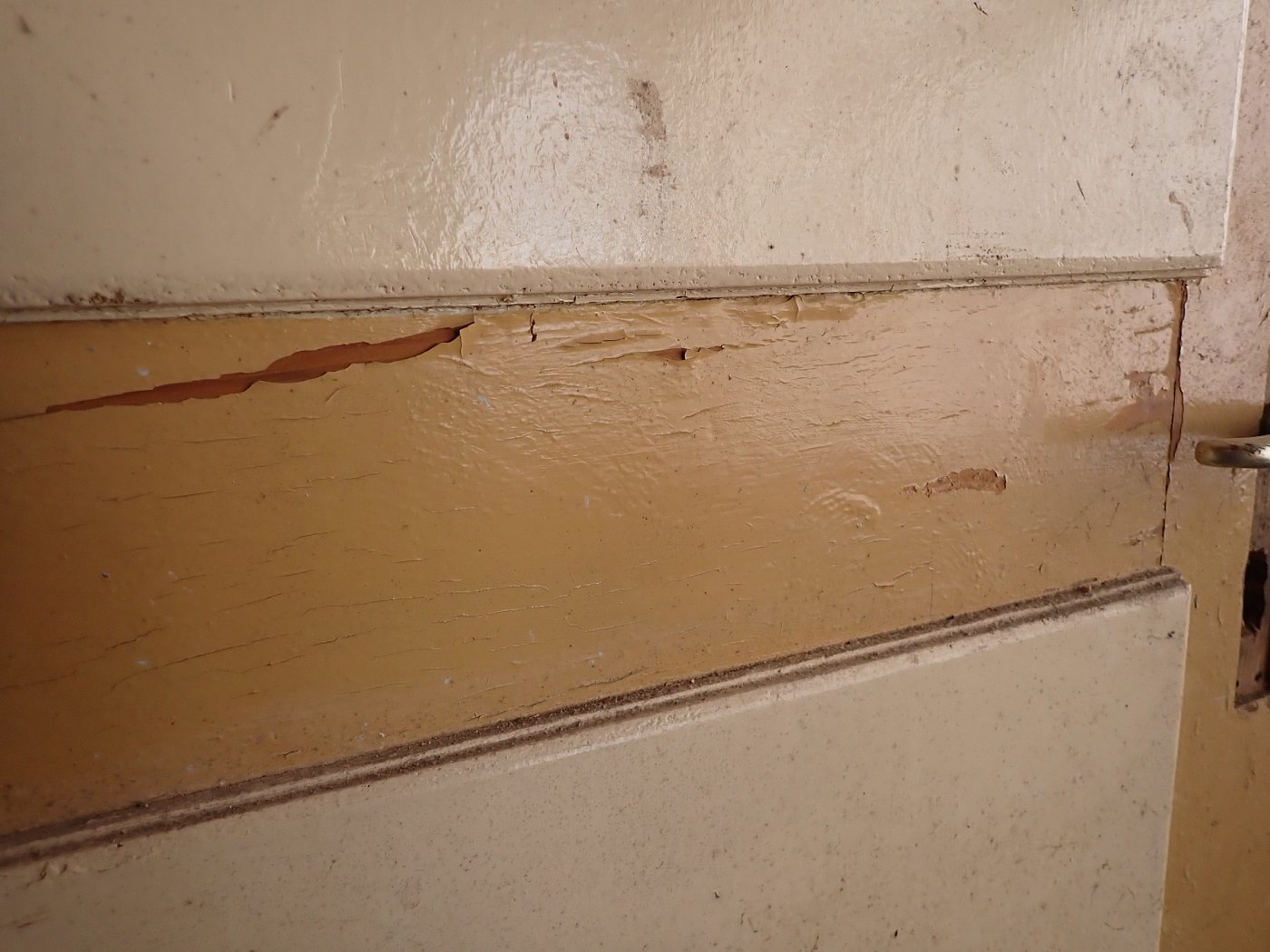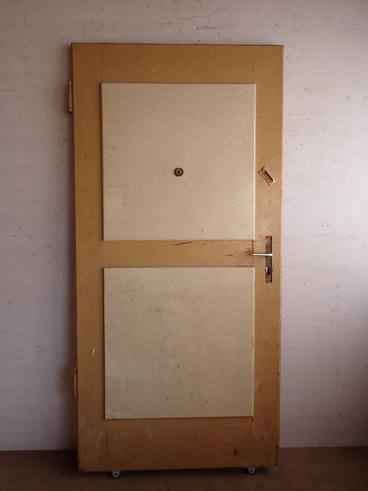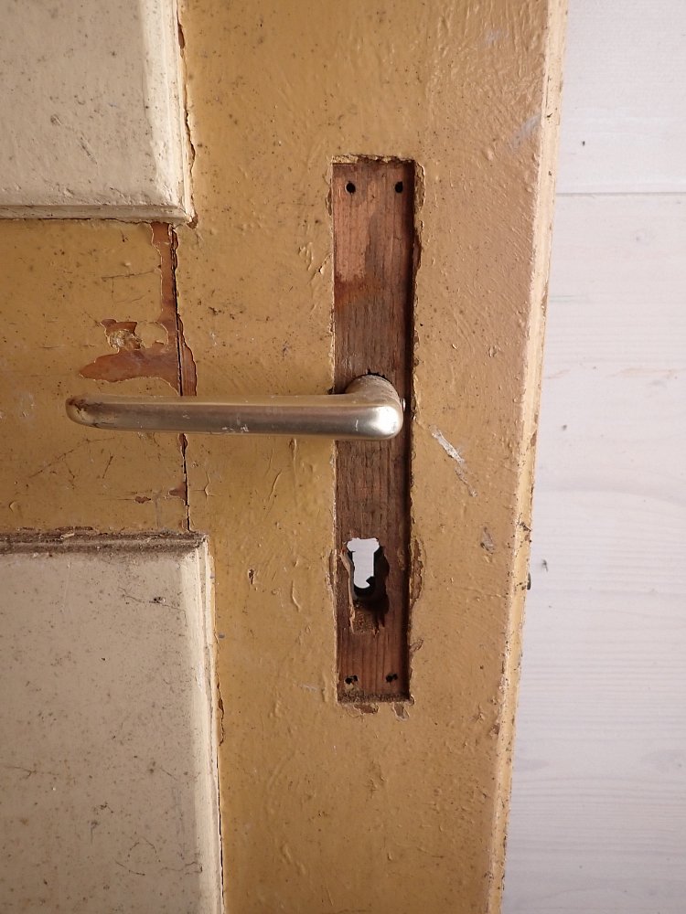 Die Tür befindet sich in einem soliden Zustand. Der Lack der gelben Seite blättert etwas ab und es sind kleine wenige Macken auf der Oberfläche zu finden.