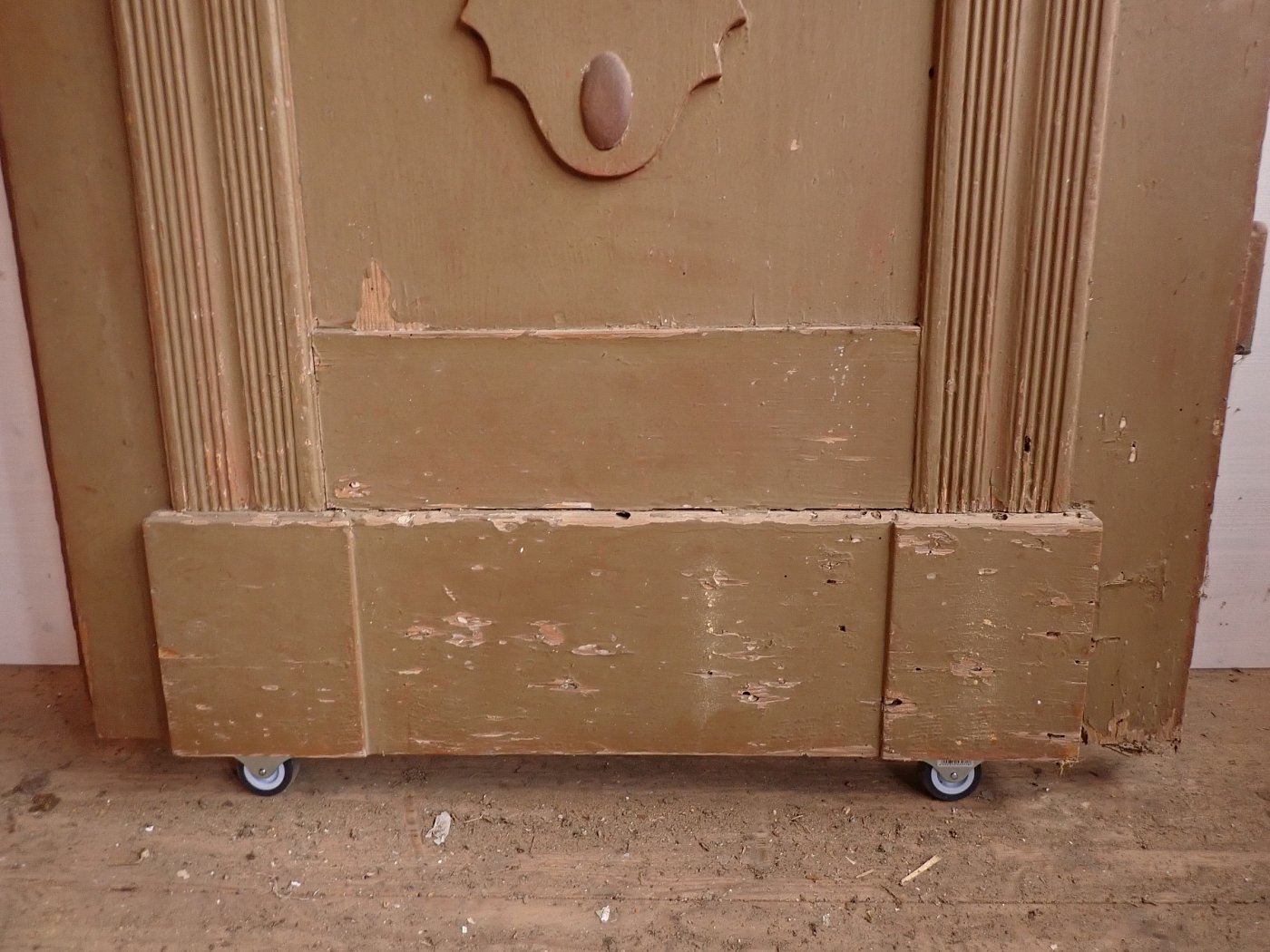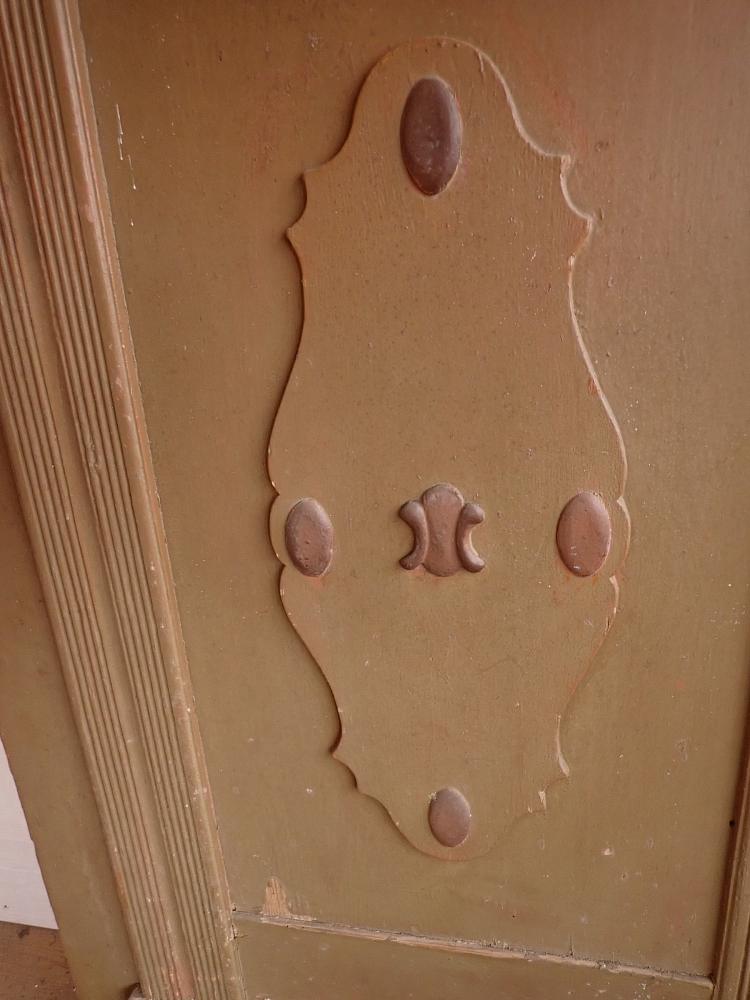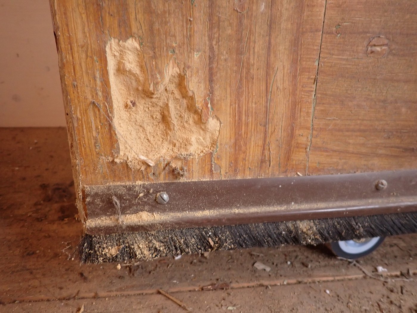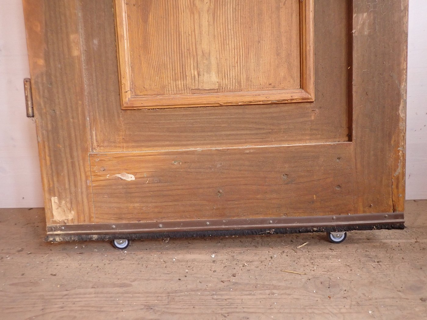 Es sind an der Tür verteilt Wurmlöcher zu erkennen. Auf der Innenseite der Tür ist unten ein Stück Holz herausgebrochen. Die Mängel sind auf den Bildern zu erkennen.