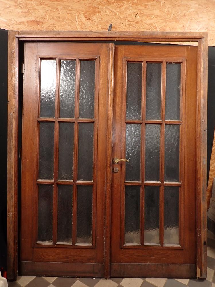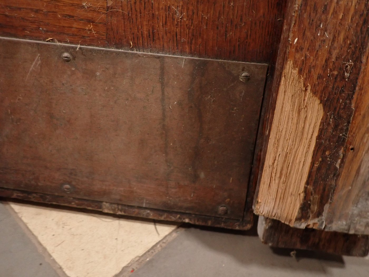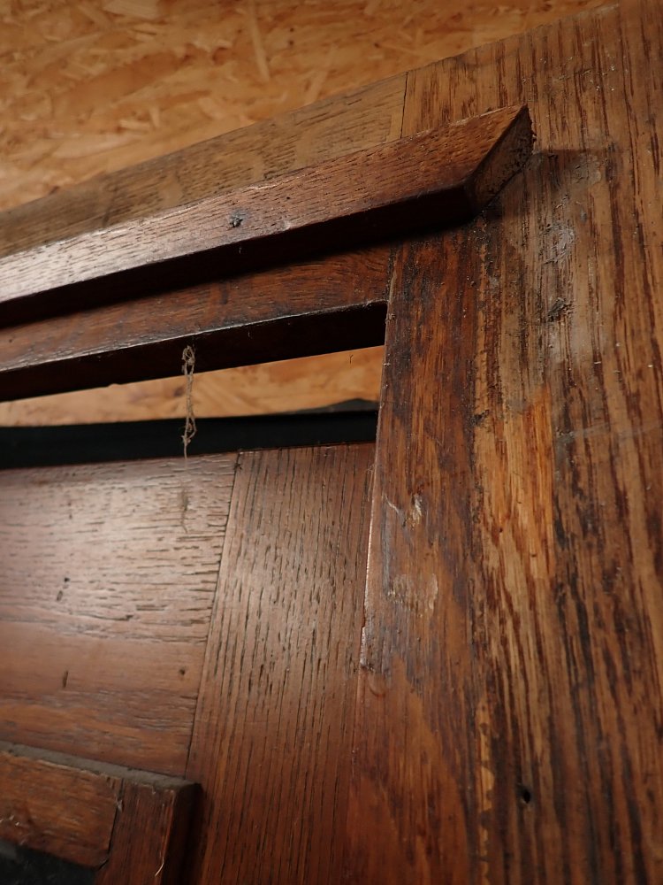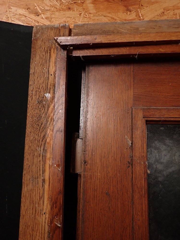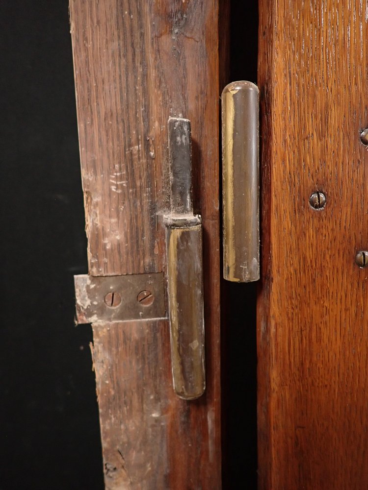 Die Tür ist aus Eiche und hat 18 Glasfüllungen. An der Tür ist ein schönes Messing Drücker paar und auf der Außenseite ist ein Kupfer Wetterblech angebracht. Am Gehflügel ist ein Türschließer angebracht, wer diesen nicht braucht, kann ihn einfach abschrauben.