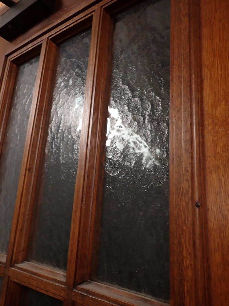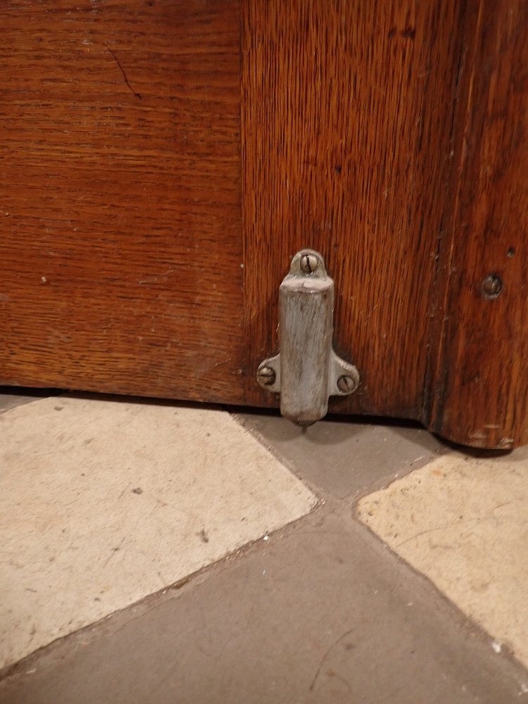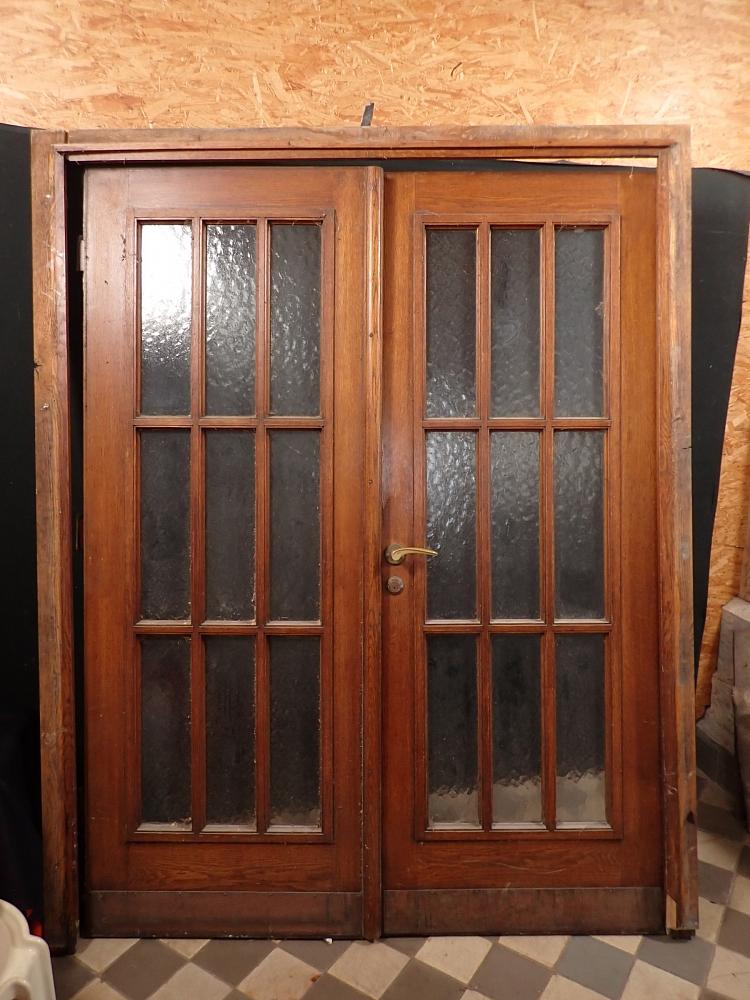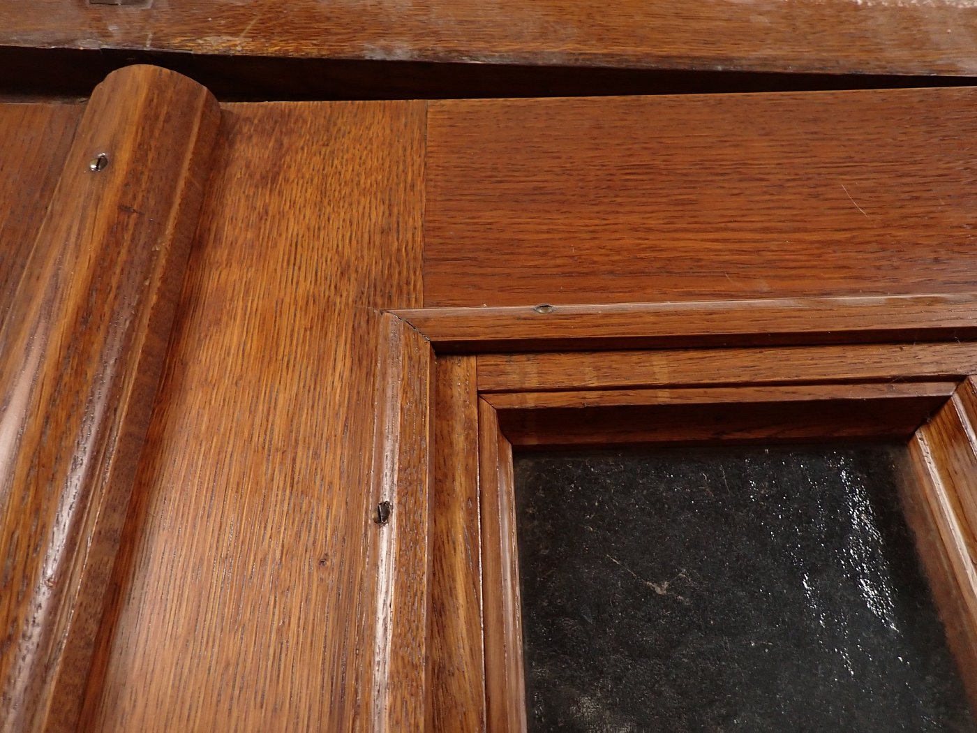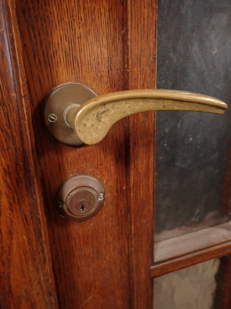Die Tür ist aus Eiche und hat 18 Glasfüllungen. An der Tür ist ein schönes Messing Drücker paar und auf der Außenseite ist ein Kupfer Wetterblech angebracht. Am Gehflügel ist ein Türschließer angebracht, wer diesen nicht braucht, kann ihn einfach abschrauben.