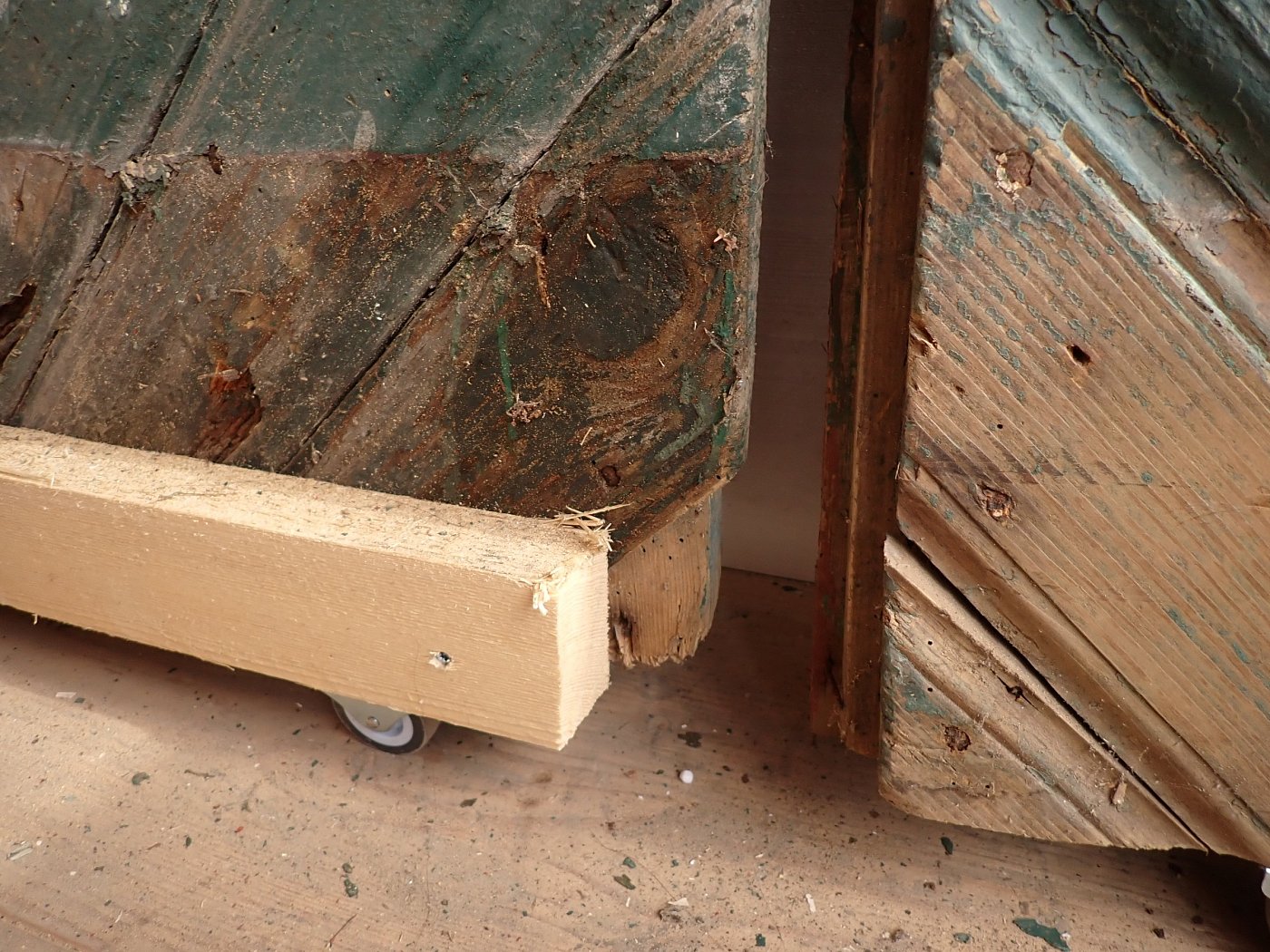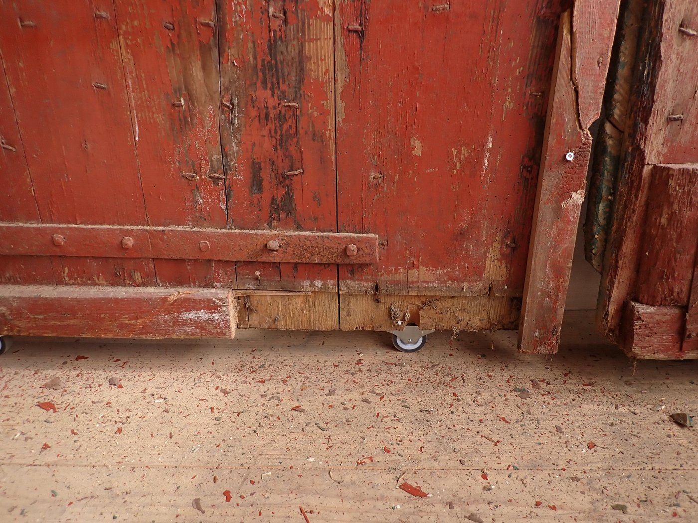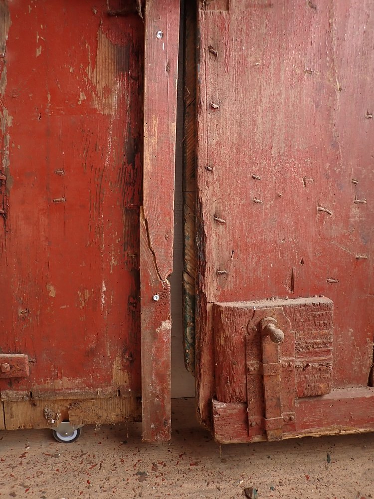 Insgesamt befinden sich die beiden Torflügel in einem soliden Bergezustand, brauchen vor einem Wiedereinbau aber auf jeden Fall die eine oder andere Ausbesserungsarbeit. So ist beispielsweise an einem Flügel der untere Bereich morsch und die Schlagleiste hat durch Lagerung und Transport etwas gelitten.