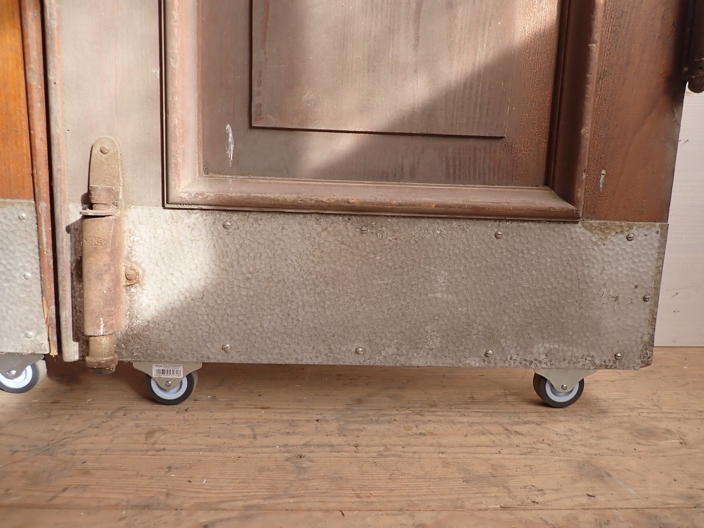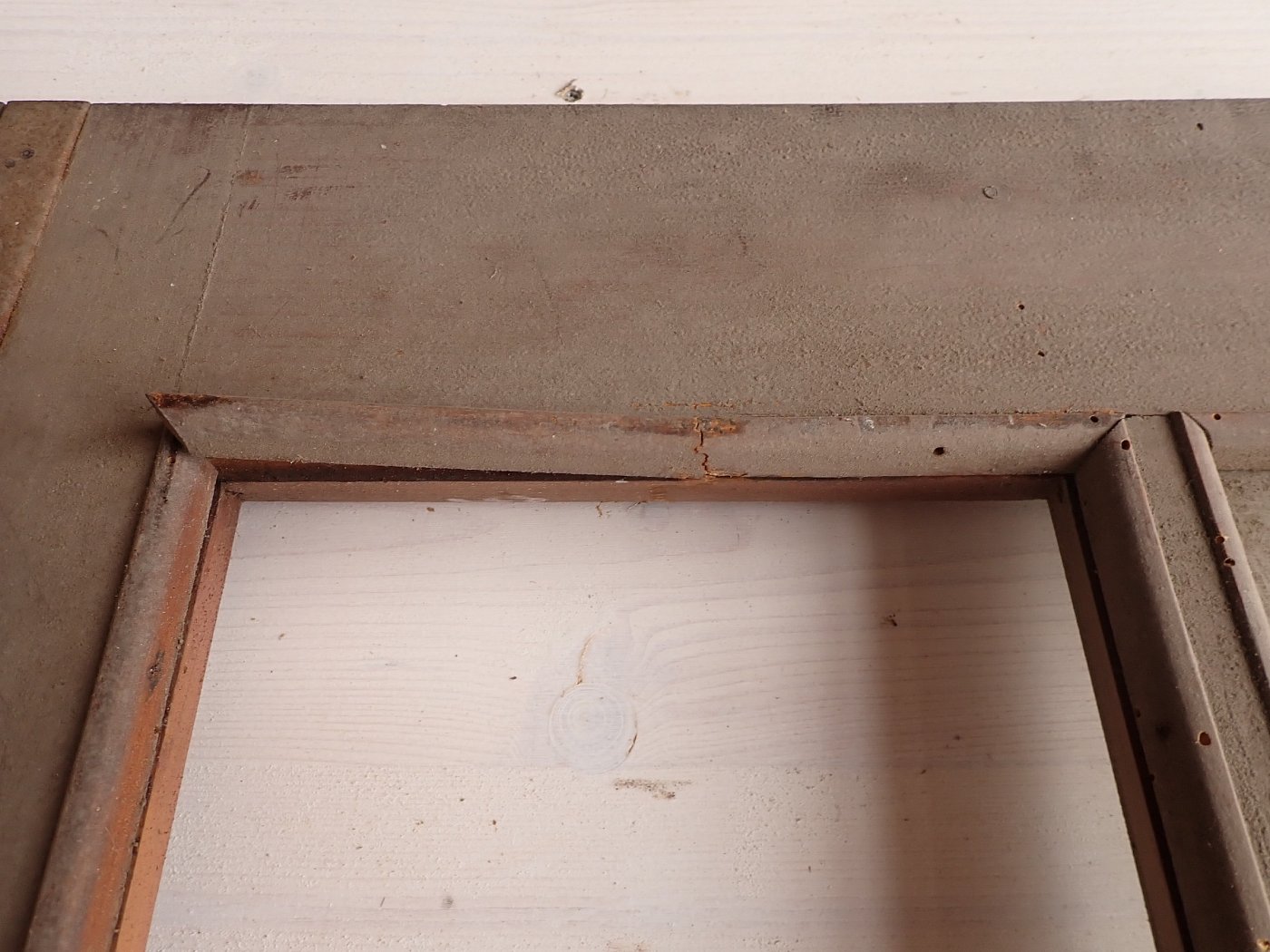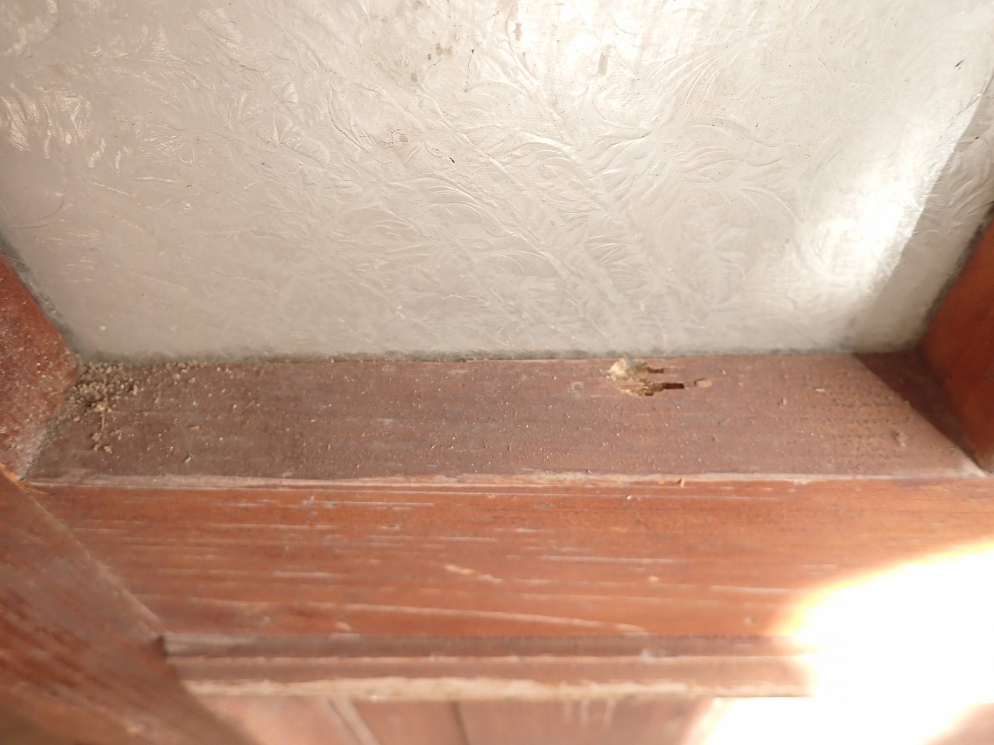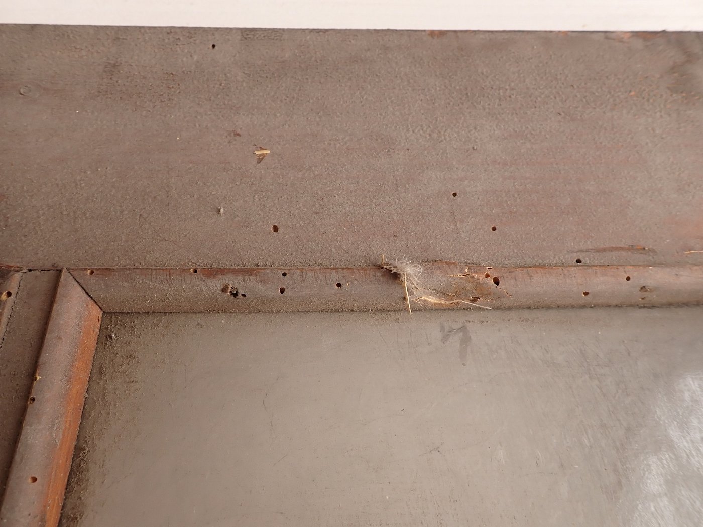 Die Tür ist in einem soliden Zustand. Vieles lässt sich bereits mit einer ersten Reinigung entfernen und sonst weist die Tür altersbedingte Gebrauchsspuren auf. Leider sind drei der Fenster kaputt und es sind Spuren eines Holzwurms erkennbar.