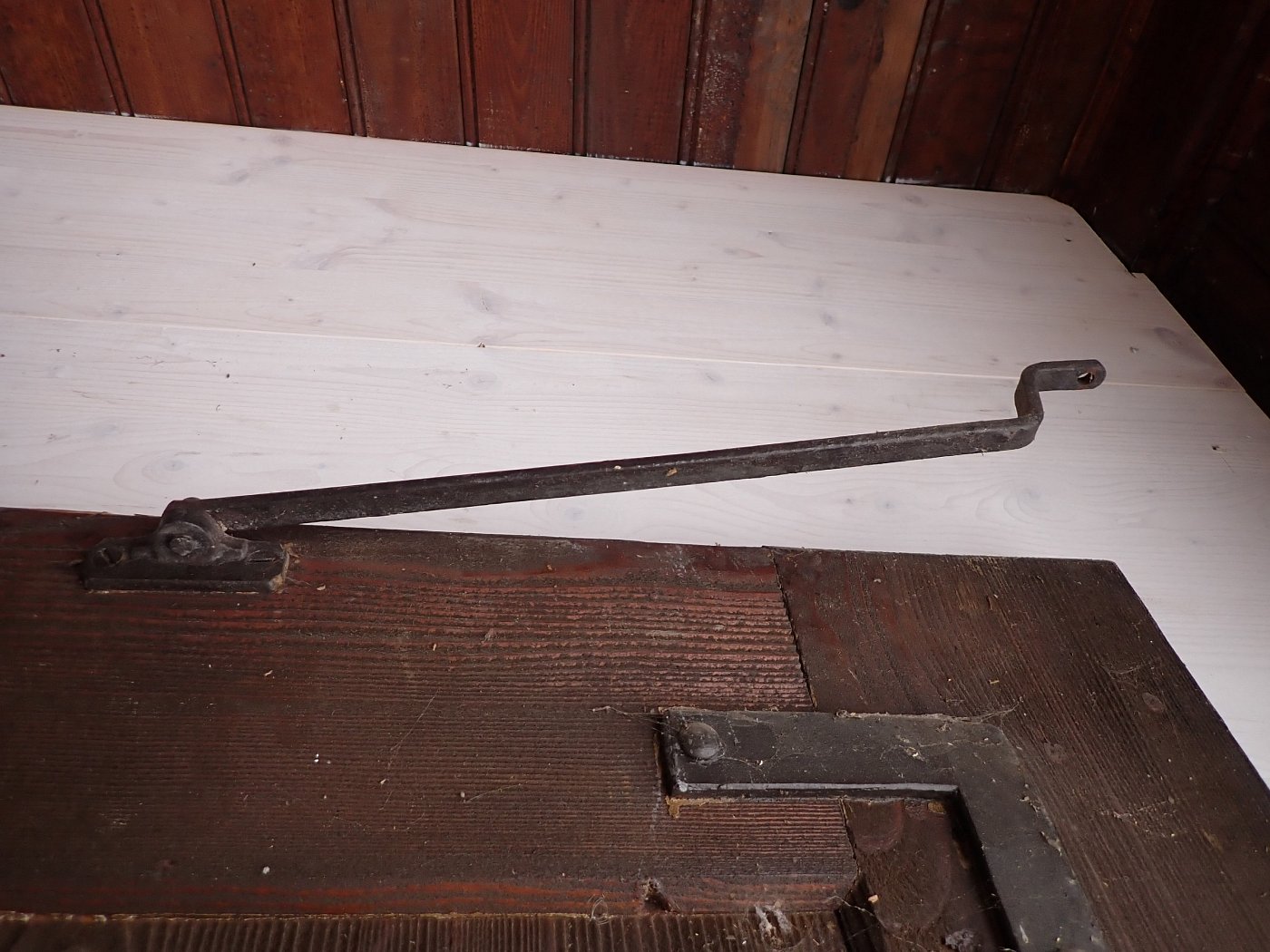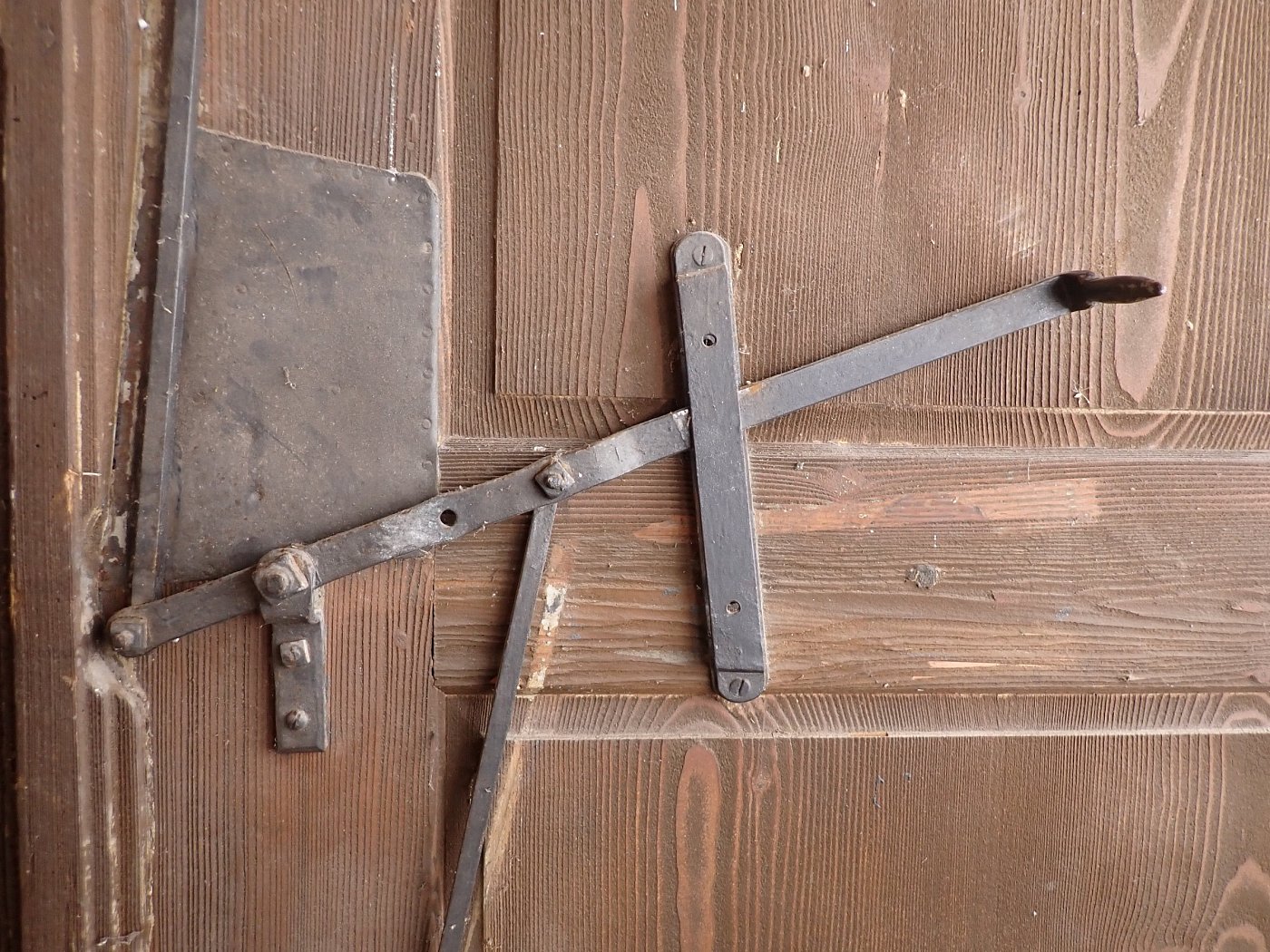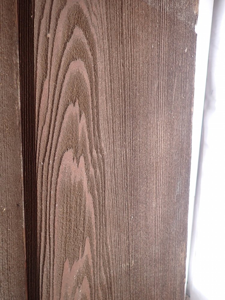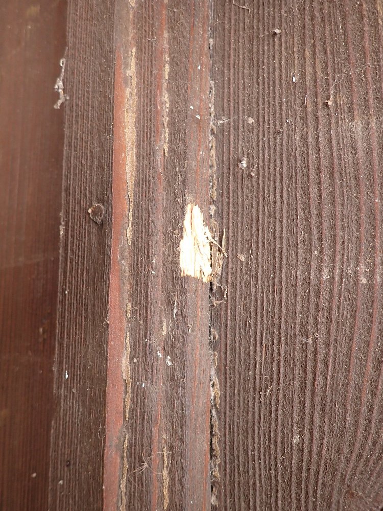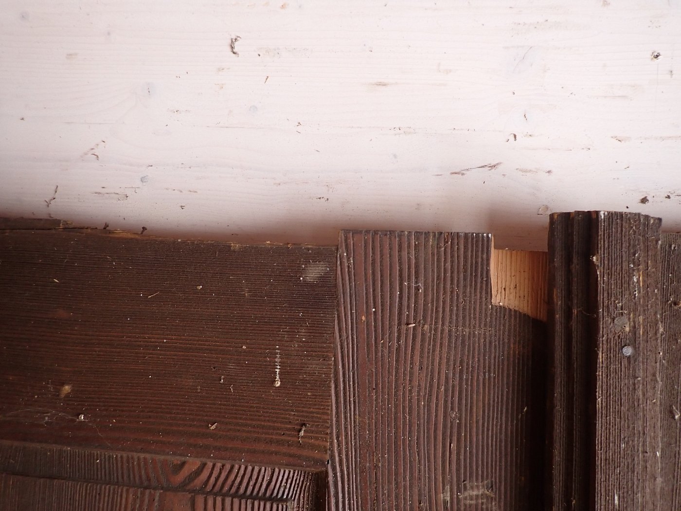 Die Tür befindet sich in einem soliden Zustand. Altersbedingt hat es an den Kanten oder auf der Oberfläche der Türen Stellen, die bereits abgebrochen sind. Es sind Spuren eines Wurmbefalls zu erkennen.
