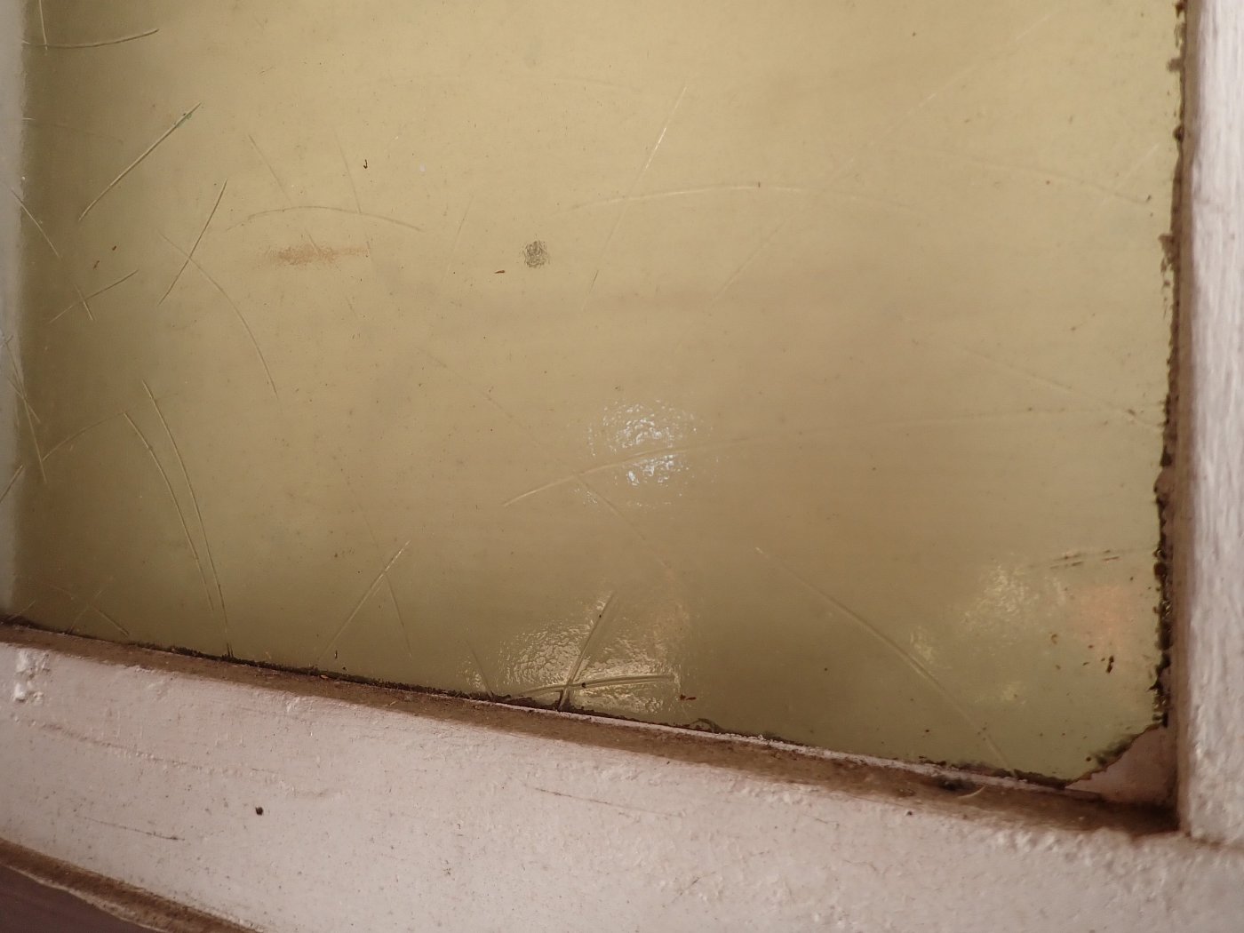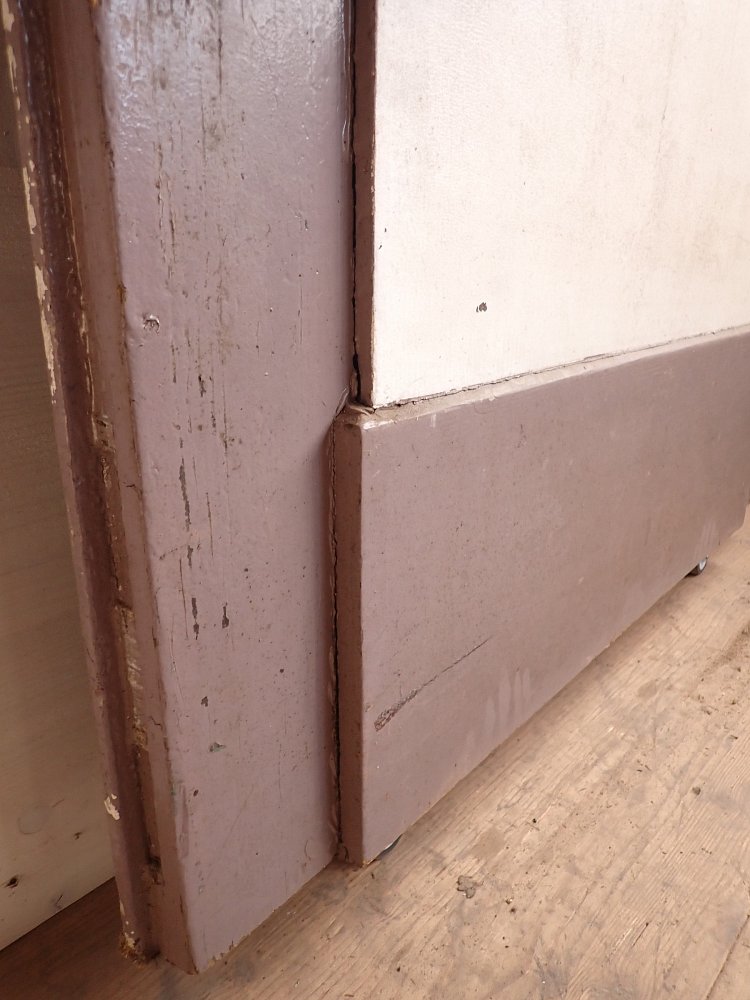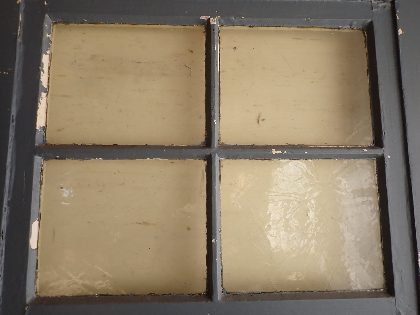 Vor einem Wiedereinbau braucht die Tür auf jeden Fall noch einige Zuwendung, denn im Laufe der Jahre hat sie die unterschiedlichsten Farbschichten aufgetragen bekommen. Zuletzt dann sogar noch eine Klebefolie auf der Kassettenfüllung.