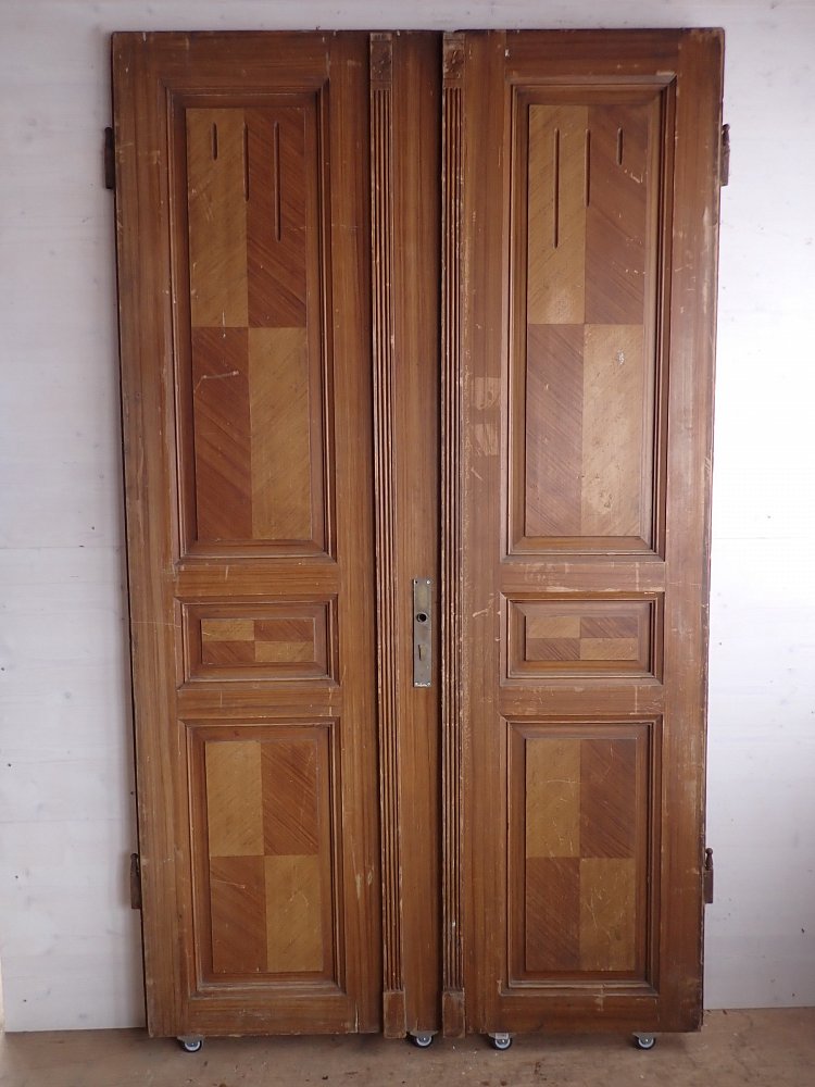 Große Wohnungseingangstür mit zwei Flügeln.