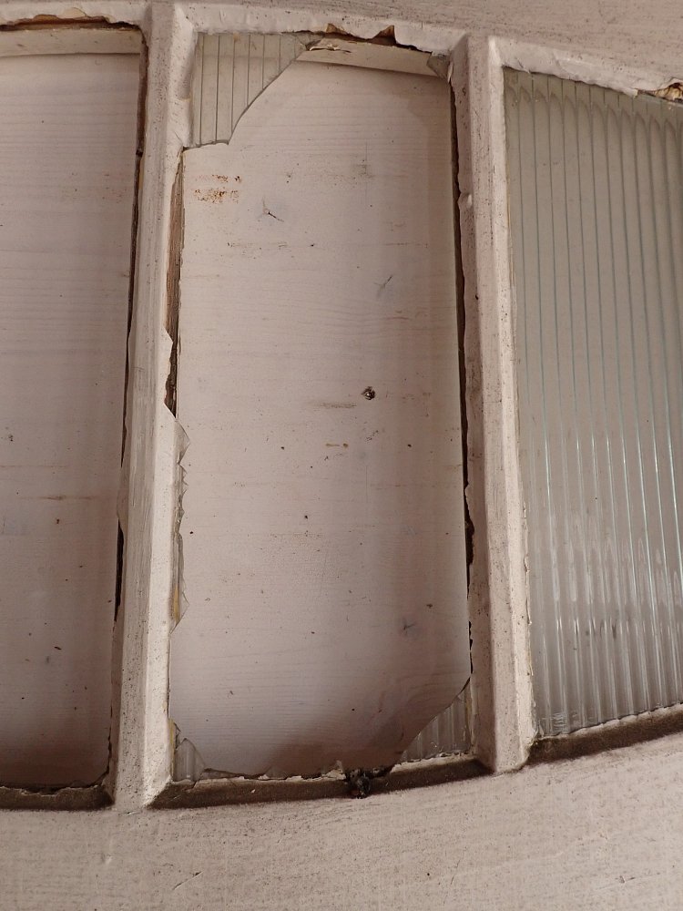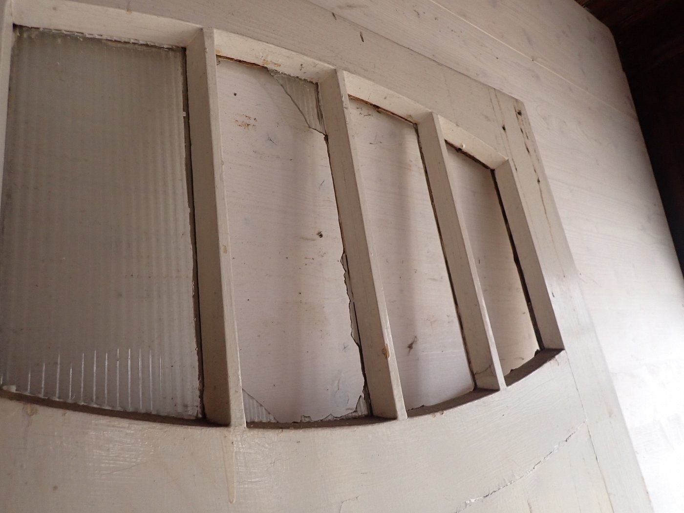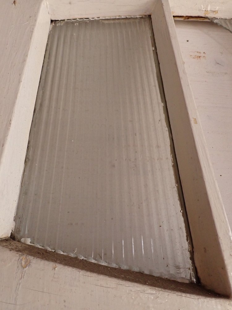 Bis auf eine Riffelglasscheibe fehlen die Scheiben aktuell und müssen vor einem Wiedereinbau ersetzt werden. Durch den klassischen Kittfalz ist das recht einfach umsetzbar.