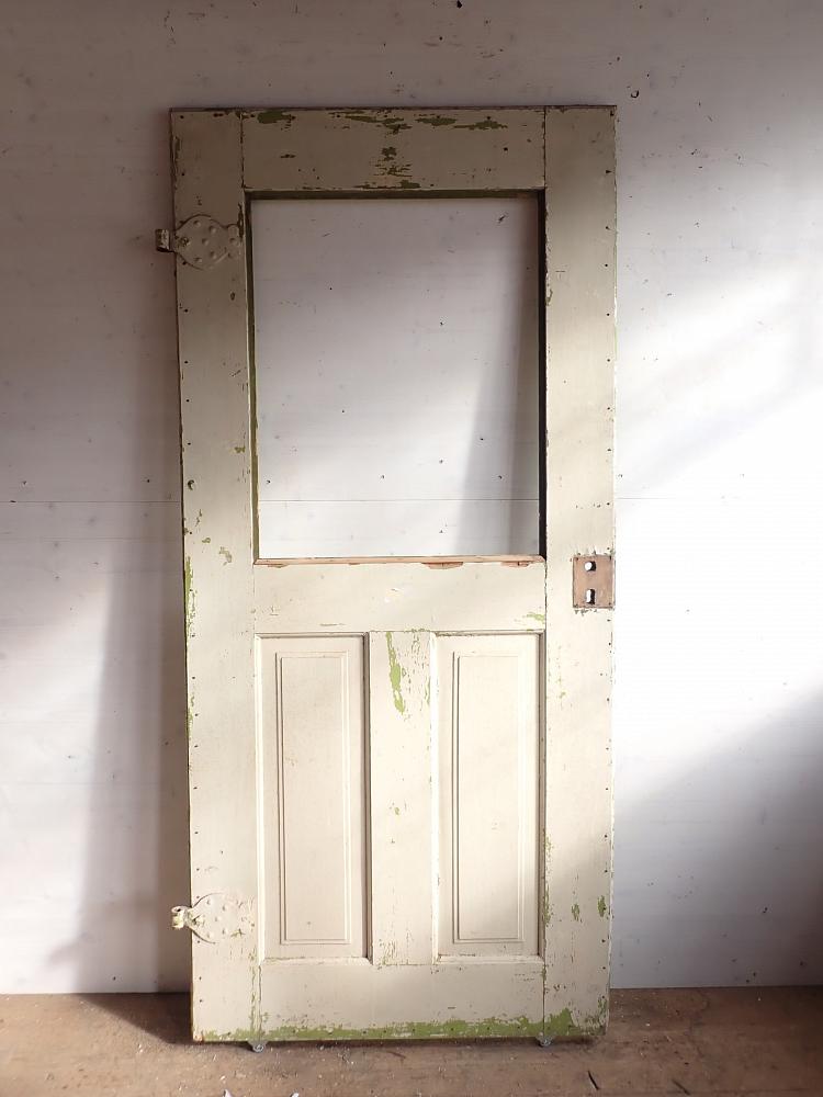 Die Zimmertür im Stil der Gründerzeit und ist mit drei Füllungen gestaltet. Ein sehr großer Bereich macht die Lichtöffnung in der oberen Hälfte aus. Da fehlt leider das Glas, zu diesem die Maße in den Abmessungen angegeben sind. An der Tür fehlen Schloss und Türklinken, für die es bestimmt einen passenden Ersatz in unserem Türzubehör finden lässt.